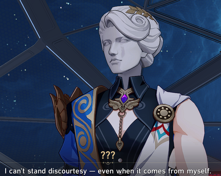 Cyrene doesn't care about anyone or anything that isn't Caelus btw. She doesn't want to talk to Wormnaxa, doesn't want to talk to Wormdei, doesn't want to talk to Wormnon. She doesn't want to get to know them. They don't matter to her. Doesn't care about Amphoreus or it's people. She only cares about Caelus. This is based