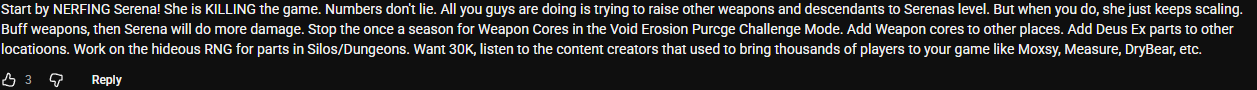 The <endgame> grind for ancestor and trigger modules is creating a content aversion. When you can complete everything with lesser gear, the incentive to run the same axions missions endlessly disappears. This design doesn't motivate me to do it anymore.