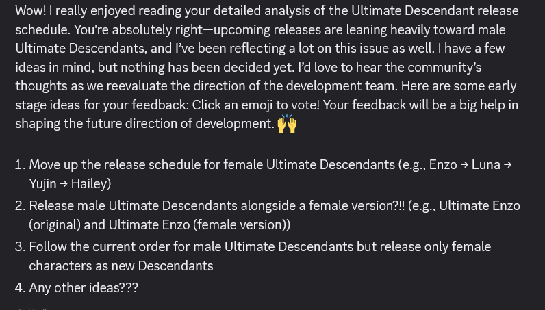 If they announce ultimate Hailey is moving up to take Esimo's place, you know they're scared.