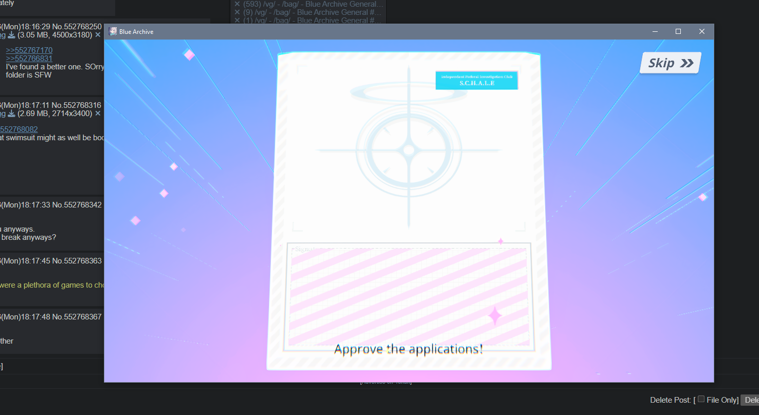 Previous Thread: >>552735849>Guides, Resources and useful links:https://rentry.org/bagguides>/bag/Circles/Clubs/Friends:https://rentry.org/holdingthebag>4koma, Manga, Side Content, PVs & Shortshttps://rentry.org/bacontent>>(JP) – JST>Banners:>12/24 After Maint – 1/7 10:59Tsukuyo (Dress)Michiru (Dress)>News:5th Anniversary Website: https://5th-anniversary.bluearchive.jpPatch notes: https://bluearchive.jp/news/newsJump/614>Events:An Unconcealed Path: Fashion Show Escort Mission! – 12/24 After Maint – 1/7 10:59The Senses Descend – 1/7 After Maint – 1/14 3:59>Content:Total Assault: Hovercraft (Field) – 12/31 11:00 – 1/7 3:59Joint Firing Drill (Escort) – 1/7 After Maint – 1/14 3:59Grand Assault: ShiroKuro (Urban – Torment w/Special & Elastic Armor) – 1/14 11:00 – 1/20 3:59Limit Break Assault: The Fury of Set (Field – w/Light Armor) – 12/25 11:00 – 1/20 3:592x Normal/Lesson – 12/31 4:00 – 1/7 3:592x Account EXP – 1/3 4:00 – 1/5 3:592x Hard – 1/7 4:00 – 1/14 3:592x Scrimmage/Commission – 1/14 4:00 – 1/20 3:59>>(GLOBAL) – UTC>Banners:>1/6 2:00 – 1/13 1:59Toki (Limited)Nagisa (Limited)KannaChiaki>News:Patch notes: https://forum.nexon.com/bluearchive-en/board_view?thread=3317296>Events:My Office: https://bluearchive.nexon.com/user/myoffice>Content:Grand Assault: Binah (Urban – Torment w/Elastic Armor) – 1/6 2:00 – 1/12 18:59Limit Break Assault: Tiphareth (Indoor – w/Heavy Armor) – 12/17 2:00 – 1/12 18:593x Commissions – 1/5 19:00 – 1/12 18:593x Normal – 1/5 19:00 – 1/9 18:592x Account EXP – 1/9 19:00 – 1/11 18:593x Hard – 1/9 19:00 – 1/12 18:592x Bounty – 1/12 19:00 – 1/19 18:592x Account EXP – 1/16 19:00 – 1/18 18:59
