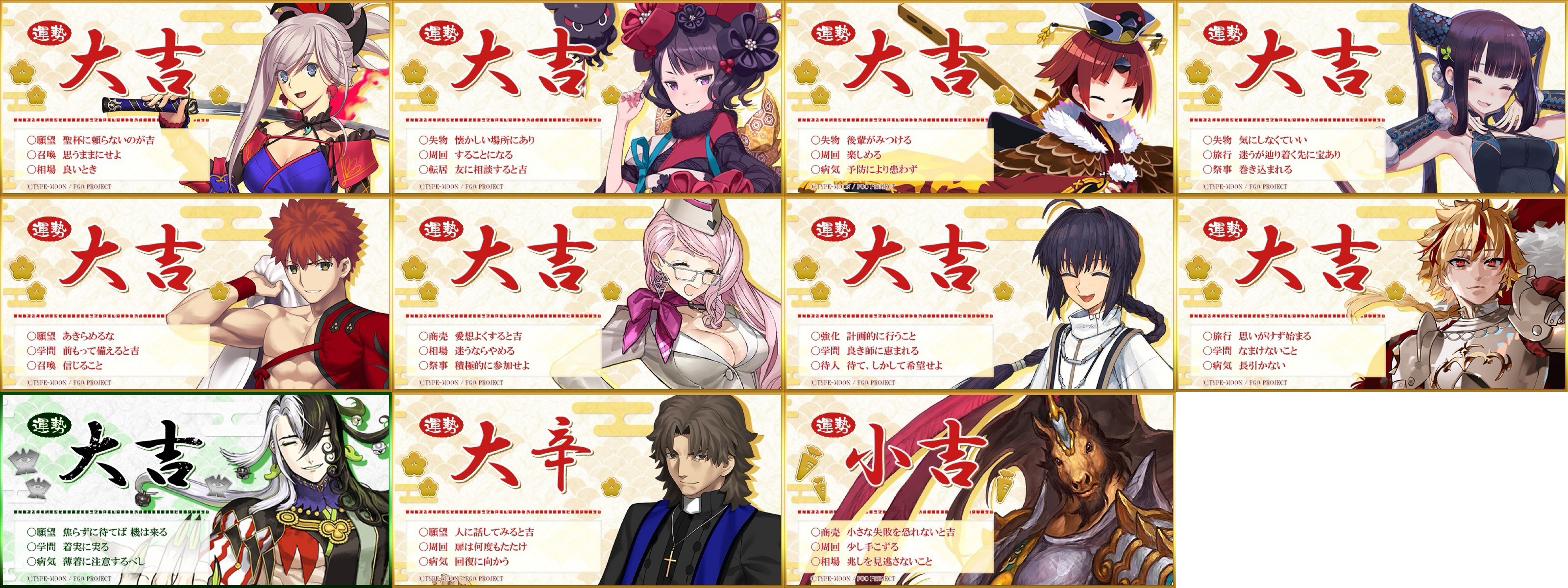 Previous: >>552701273>Fate/strange Fake Broadcast Commemoration Campaign:●January 3~10 JST.▶Login Bonus: A commemorative CE.▶Interludes for Gilgamesh and Enkidu will be open for all players.https://news.fate-go.jp/2026/2026_f_s_f_cp/>Fate/strange Fake PU summon:●January 3~10 JST.5*Saber Richard I (limited)●January 9~16 JST.5*Archer Gilgamesh (limited)5*Lancer Enkidu (permanent)https://news.fate-go.jp/2026/2026_f_s_f_cp_pu/>2026 New Year's Campaign:●January 1~15 JST.▶Present: 30 SQ, 20.26M QP and a commemorative CE.▶Login Bonus: 30 Hellfire of wisdom, 10M QP, 1 Crystallized Lore, 20 3*Fou-kun (10ATK, 10HP),10 Golden Apple, 1 Beast's Footprint, 2 5*Fou-kun (1ATK, 1HP) and 1 Holy Grail.▶Daily Fortune Bonus: 10M QP and one random material.▶Panel Missions: 5 Summon Tickets, 1 Crystallized Lore, 4.42M QP, 6 SQ, 7 Grail Tears,1 Beast's Footprint, 3 Golden Apples, a limited 3*Command Code and a commemorative CE.▶A Stargazer's Teapot will be added to daily missions rewards (~Jan 7).▶Master level increased to 200.▶The chances of obtaining a great/super success when strengthening a servant/CE will be double.▶AP consumption for Ember Gathering and Training Grounds will be halved.https://news.fate-go.jp/2026/newyear2026_cp/>Scheduled maintenance for January 6, 01:00~05:00 JST.>2026 New Year PU summon:●January 1~14 JST.5*Saber Lord Logres●January 4~6 JST.5*Berserker Arjuna Alter4*Archer Aśvatthāman (story locked)●January 5~7 JST.5*Lancer Biscione4*Caster Daikokuten●January 6~8 JST.5*Archer Tutankhamun4*Caster Yui Shōsetsu●January 7~9 JST.5*Assassin Huyan Zhuo4*Avenger Xu fu●January 8~10 JST.5*Rider Takeda Shingen4*Berserker Nagakura Shinpachi●January 9~11 JST.5*Ruler Mélusine4*Archer UDK-BarghestAll limitedhttps://news.fate-go.jp/2026/newyear2026_pu/>/fgog/ Friendlist form (2026):https://forms.gle/WK4dwSC6Mn2WQfZu8>Utility links:
