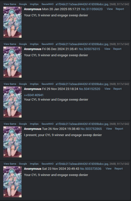 >>552763331They even failed to secure a single winner during CYL7 because everyone was tired of it.They should thank Engayge for giving them a second wind of relevancy.