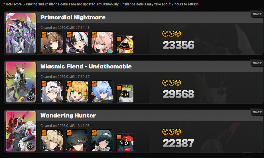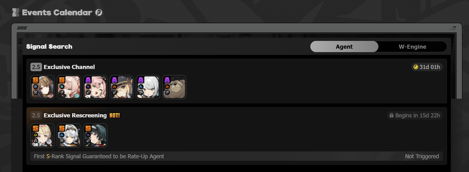 Previous: >>552756578 >NewsAgent Record | Ariahttps://www.hoyolab.com/article/43039871Agent Record | Sunnahttps://www.hoyolab.com/article/43037944Version 2.5 Special Programhttps://youtu.be/Ldeqt2WMiYMTGA 2025 Special Videohttps://youtu.be/X-g1N9mNjzs >Newest Trailer/Teaser/Character demohttps://youtu.be/35fRoOYhE6Y (EN)https://youtu.be/BSKG5nhlj5s (JP)https://youtu.be/D_MtaEZRy3E (EN)https://youtu.be/eJBlfglfs-4 (JP)https://youtu.be/9Lshum4Peqw (EN)https://youtu.be/oCcNiUZ5ogU (JP)https://youtu.be/TU5Bt8MLPjk (EN)https://youtu.be/bviZmH3w5ew (JP) >Upcoming Events for 2.5https://zenless.hoyoverse.com/en-us/news/161728All-New Program 12/29 - 02/05Special Visitor 12/29 - 02/09Potential Hypothesis New Chapter Reforged 12/29 - 02/09Sword Seeker Chronicles 12/31 - 02/05Joint Investigation: The Divine Maze 01/03 - 01/22Shadow Riptide Clash 01/09 - 01/26Wish Filing Station 01/14 - 02/02Advanced Bounty: Area Patrol 01/16 - 01/21"En-Nah" Into Your Lap 01/21 - 02/05Angels and Delusions of Muse 01/21 - 02/05Data Bounty: Combat Simulation 01/30 - 02/04Angels of Delusion Training in Progress 01/30 - 02/09 >Redeemable codes (claimable in-game or online)https://zenless.hoyoverse.com/redemptionZENLESSGIFTZZZCREATOR25ZZZ25MINAZHAOISFREE MEETTHEVOIDHUNTERShunguangWinterGiftZZZ2026 >Resources and useful linkshttps://rentry.org/zzzlinkshttps://rentry.org/ZZZ-Friendshttps://rentry.org/ZZZ-Guilds >/zzz/ OP pastebin (use this if making new thread):https://pastebin.com/PzbMf13P