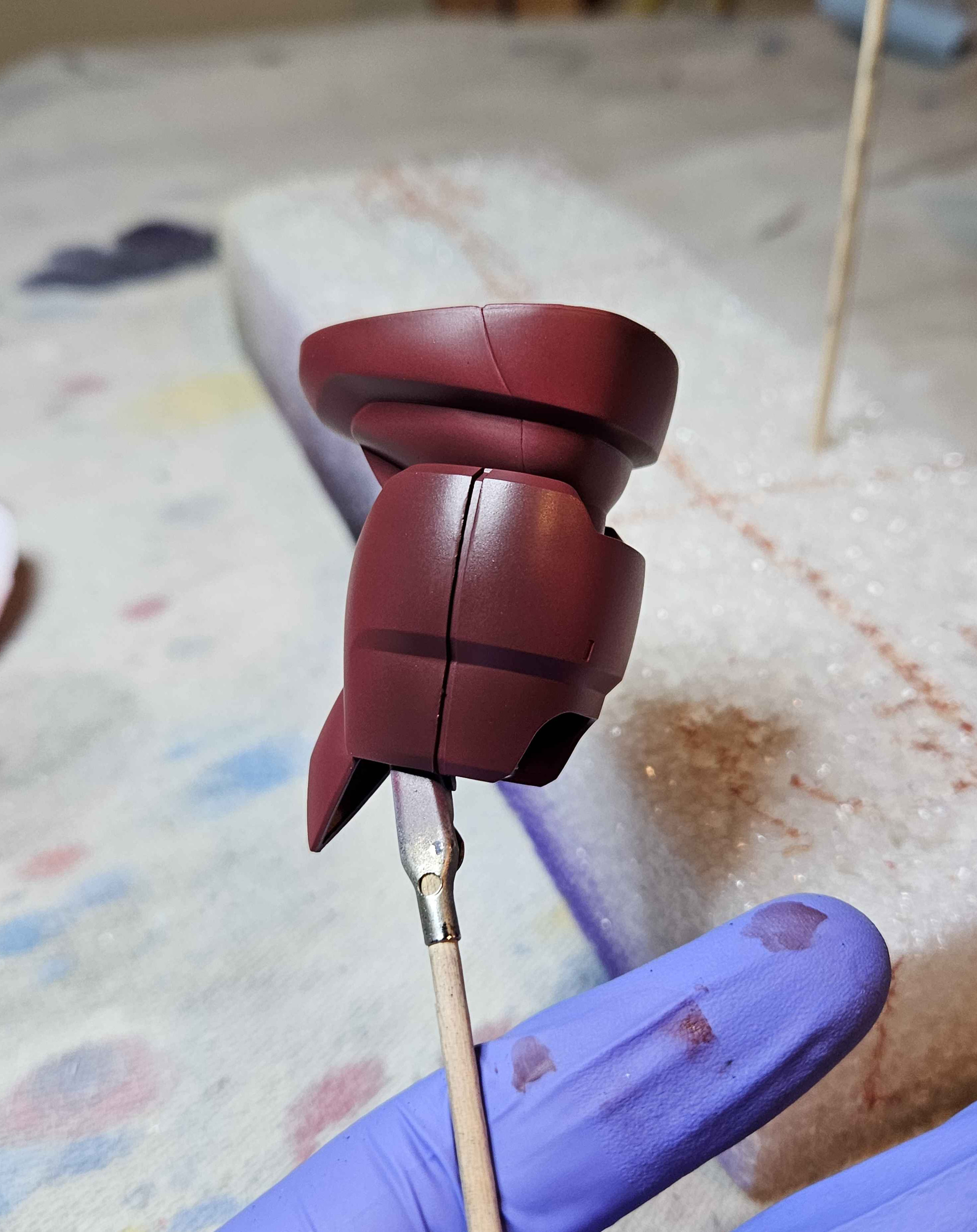 >>552787356Banger, don't spoil PL for me though I haven't had a chance to play it yet. If you want some Skyrim mod recs I can hook you up too but vanilla purism is fine and goodMe I've spent the past couple of weeks working on an HG Z'Gok (Char's) and it's honestly a really cute little kit. It's from like 2003 so as you can imagine it's super simple and the monoeye is just a sticker but I'm gonna see about putting a sequin on to replace that. Most of the effort so far has gone into the paintjob and I admit I've been a bit stressed recently because with all the tariff bullshit it doesn't seem like GSI is chomping at the bit to export into the US and all my paint is Mr.Color, so there are a couple of things I'm running low on including 1500 Gray primer and importantly for this build Char Red, but it turns out the MS-06S Red is basically the same thing and even if it's technically intended to be a straight up Zaku red it works just fine for the Z'Gok. I laid down basecoats of that on the red parts and Zeon Gray for the gray parts and added a couple of drops of Ueno Black to each and sprayed it lightly along the corners so it creates this slight weathered effect, which I went a bit too strong on for the legs so last night after I snapped the front and back leg pieces together I decided to apply another thin coat to help them blend together and keep the shadows from seeming artificial, this is after while the paint is still wet but I've got a couple of before pics too if you want. The main tricky bit now is weathering, because it's an amphibious suit and I'm not really sure how best to weather it. As far as I'm aware it only saw action once at the Battle of Jaburo and I don't really want to cover it in mud or dirt or anything like that but I also want to make it seem like it's seen at least some use, and it's not a space suit so I can't simulate micrometeor impacts like I can with the Barzam so I'm still thinking on it.
