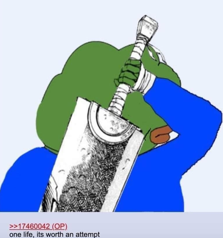 >>552801696>the whole point of life is shitting out some bratsit literally is thoughyou are still the same organism that split itself to multiply in the primordial ooze to propagate itself, just slightly more complicated on the surface and filled with idle thoughts that don't matter at all