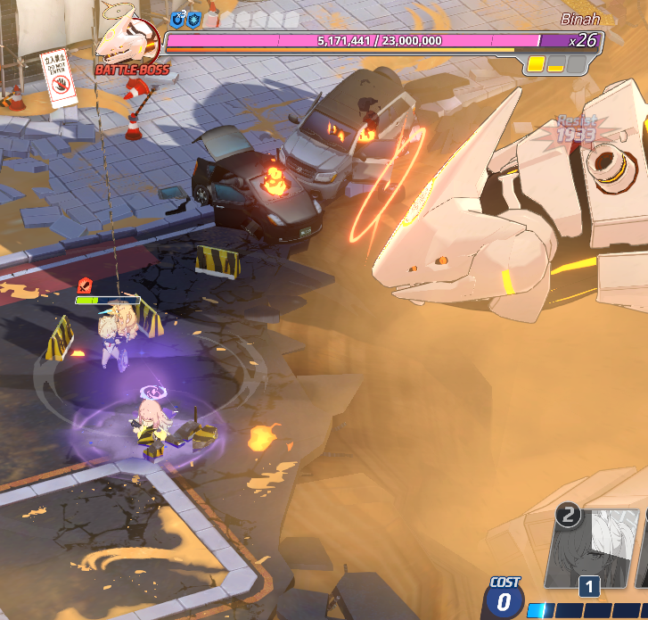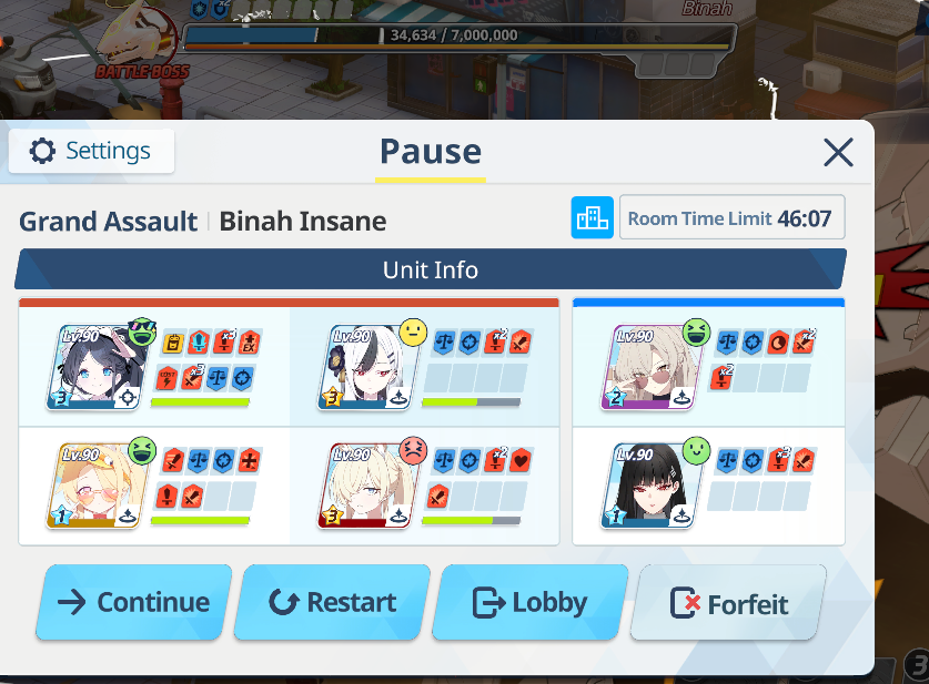 I just got blue Binah down to 3/7 of his health by using yellow Mika lol.