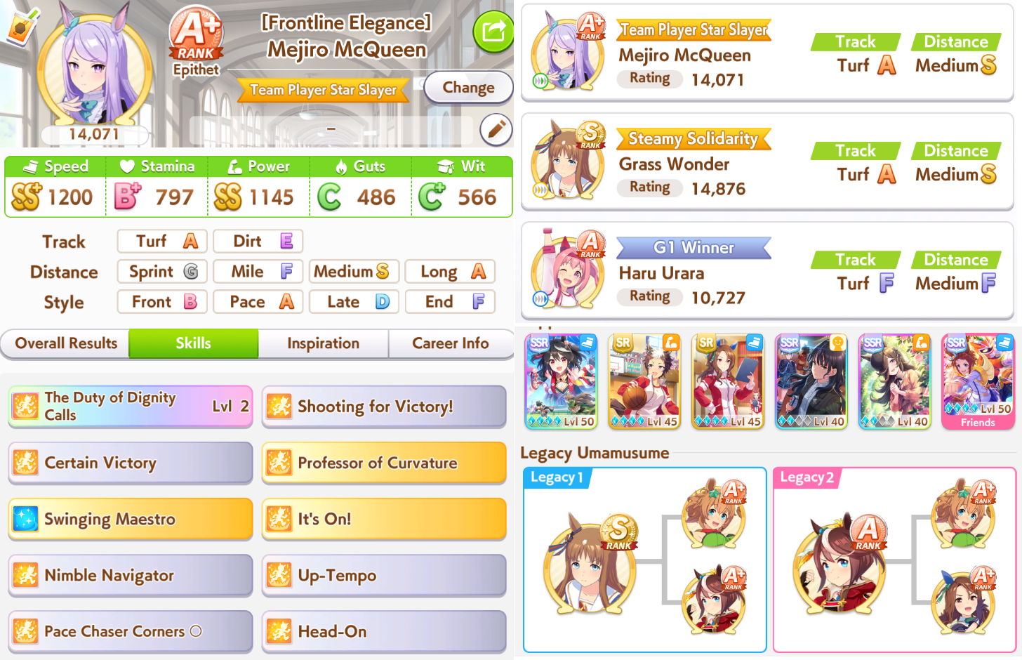 >>552837204My SMaru late started 7 out of 10 races when I did my first two tickets yesterday. I'll be fine even losing to a Hee Holiday Oguri if she has better raw stats and better procs rather than due to me not proccing shit.