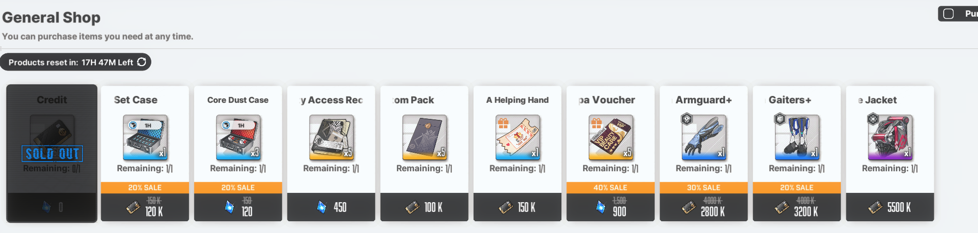 Guillotine: Dark Tracer, Helm: Chandelier & Maxwell: Mechanic White [Shop rerun] - January 1 ~ January 22