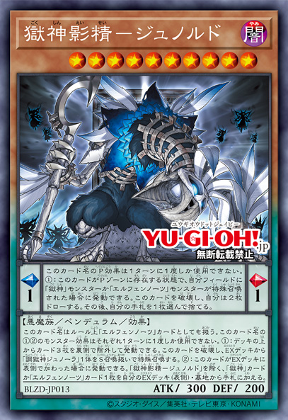 This card is always treated as a "Doom-Z" card. Each of the monster effects 1 and 2 of this card name can only be used once per turn. 1: You can activate this effect by banishing the top 3 cards of your Deck face down. Destroy this card, and Special Summon 1 "Jupiter, the Power Patron of Destruction" from your Extra Deck as an Xyz Summon. Afterwards, you can choose 1 card from your hand and use it as its Xyz Material. 2: If this card is added face-up to your Extra Deck, you can activate this effect. Add 1 "Hellsend" Spell/Trap Card or 1 "Doom-Z" Spell/Trap Card from your Deck to your hand.The Elvennote oneYou can only use this card name's Pendulum Effect once per turn. 1: While this card is in the Pendulum Zone, if a "Power Patron" monster or an "Elvennote" monster is Special Summoned to your field: You can destroy this card, and draw 2 cards. Then, choose 1 card from your hand and discard it.This card is always treated as an "Elvennotes" card. Each of the monster effects 1 and 2 of this card name can only be used once per turn. 1: You can activate this effect by banishing the top 3 cards of your Deck face down. Destroy this card, and Special Summon 1 "Junora, the Imprisonment God" from your Extra Deck as if it were a Summon. 2: You can activate this effect if this card is added face up to your Extra Deck. Add 1 "Power Patron" or "Elvennotes" card from your Extra Deck (face up) or Graveyard to your hand, except for "Junord, the Prison God Shadow Spirit".