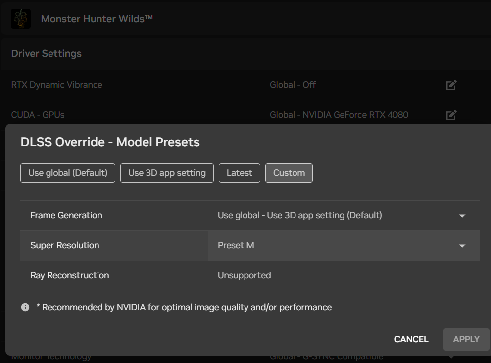DLSS 4.0 quality settings