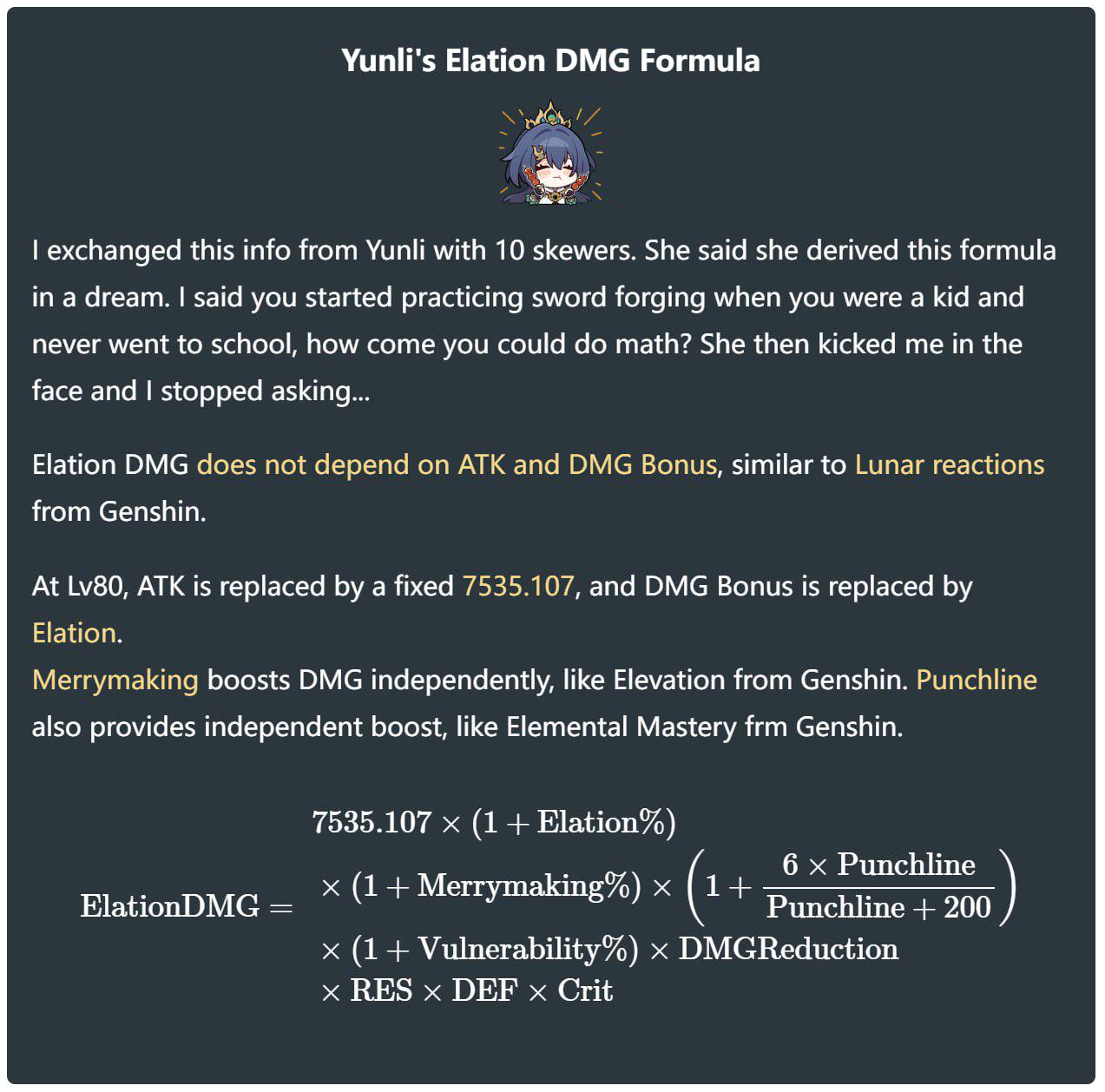 >>552872195>>552872198>Elation scales entirely off new bullshitIs GY's team-wide additional Elation DMG from her ult even gonna be worth a shit outside Elation teams?