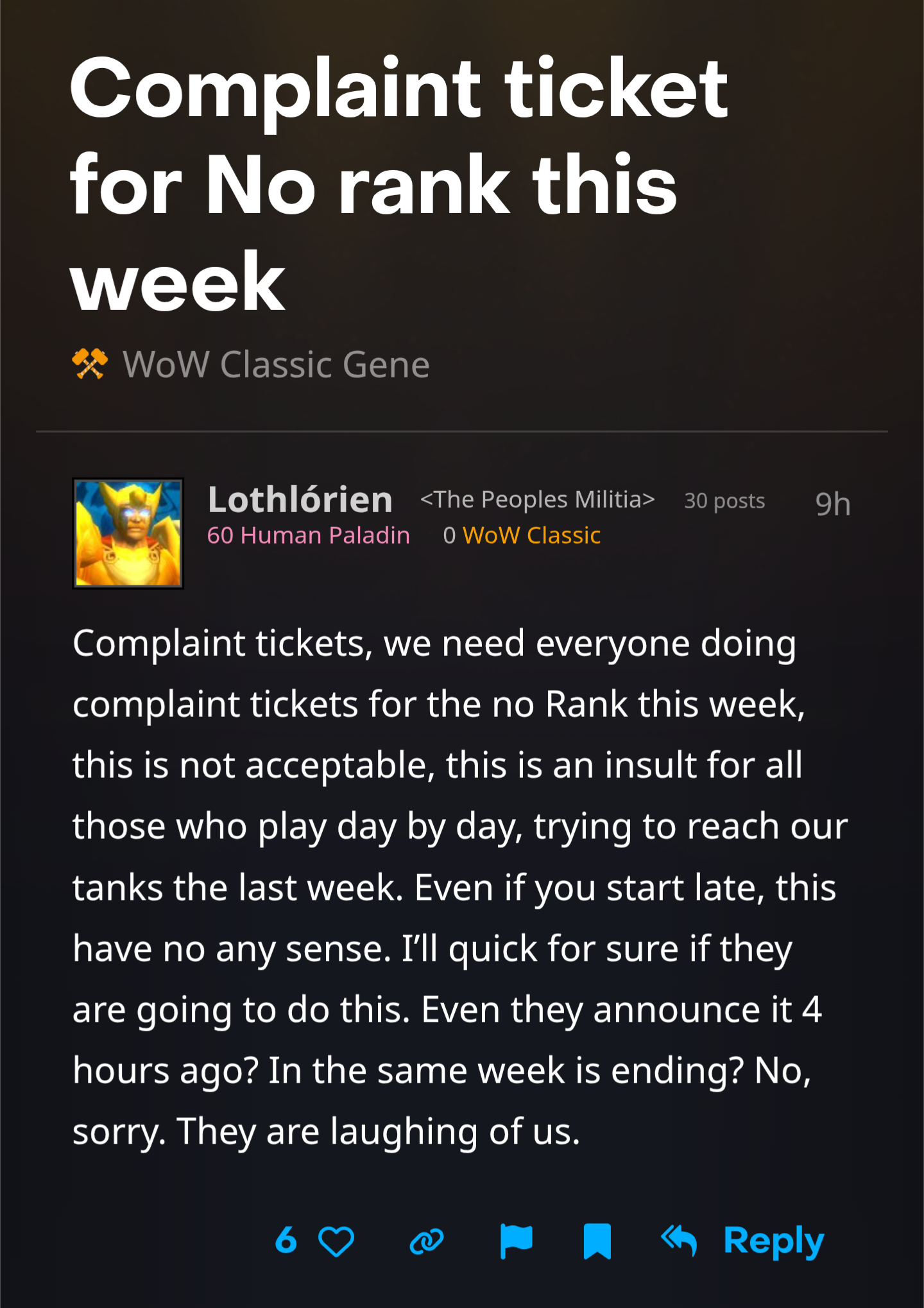 >WoW forumsMy heckin Warlord ranko, final week make honor registerrrr b4 prepatch>I hope it doesn't the pvp tears will be glorious