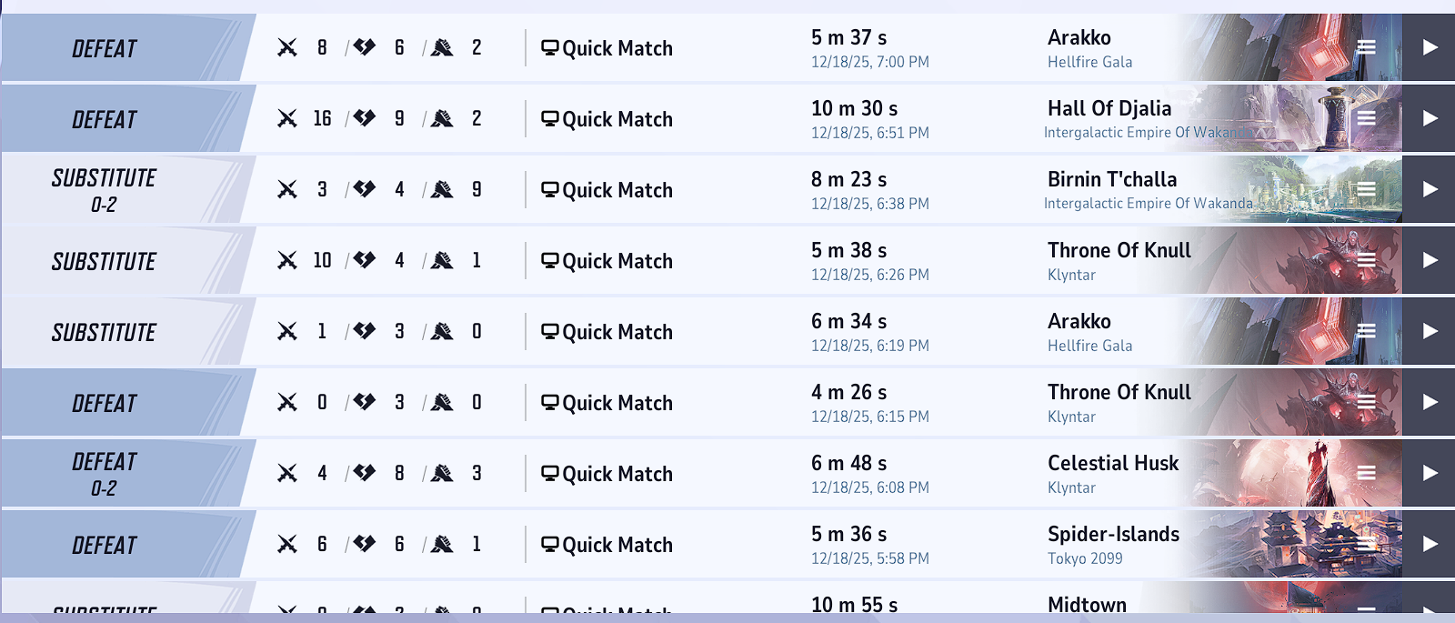 The Year of Carol Edition>NewsGone Nutty for Gifts Event Pass: https://x.com/i/status/2001321617889354199Jeff's Winter Splash Festival: https://youtu.be/2DEpKcigA30 [Embed]Season 6: Night at the Museum Official Trailer: https://youtu.be/Aj53c2Uxrtc [Embed]Seeds of the Gardener Event Pass: https://x.com/i/status/1998792449154809968Rogue Character Reveal: https://youtu.be/-_CwYQQP21Q [Embed]Dev Vision Vol. 12: https://youtu.be/abvLlSjm2-0 [Embed]Season 5 Battle Pass: Grand Garden Adventure: https://youtu.be/0EEYlg99xUk [Embed]Season 5: Love is a Battlefield Official Trailer: https://youtu.be/hXOUHb6416 [Embed]>StoreHuman Torch's Jack of Hearts skin: https://x.com/i/status/2006394923981898142Loki's Lady Loki skin: https://x.com/i/status/2006032816249909267Thor's God of Winter and Cloak & Dagger's Ice Pas de Deux skins: https://x.com/i/status/2003495853785219166Star-Lord's Starcracker, Peni Parker's Snow-SP//dr, and Daredevil's Not Daredevil skins: https://x.com/i/status/2000974432089542971Rogue's Savage South and Rocket Raccoon's Rocket of the Rafters skins: https://x.com/i/status/1998475280659182007Luna Snow's Cherry Delight skin: https://x.com/i/status/1995893222057406562Blade's Restful Recovery and Venom's Gummy Surprise skins: https://x.com/i/status/1993379313408729526Doctor Strange's Bleeker Street Strut and Magik's New Millenia Might skins: https://x.com/i/status/1990502768352600107Gambit's Thieves Guildmaster skin: https://x.com/i/status/1988369897219387549>LinksHero Hot List: https://marvelrivals.com/heroes_data/Guides & News: https://marvelrivals.gg/Tracker Resources: https://rivalstracker.comMobalytics Page: https://mobalytics.gg/marvel-rivalsFANDOM Wiki: https://marvelrivals.fandom.com/Previously on /mrg/:>>552800894