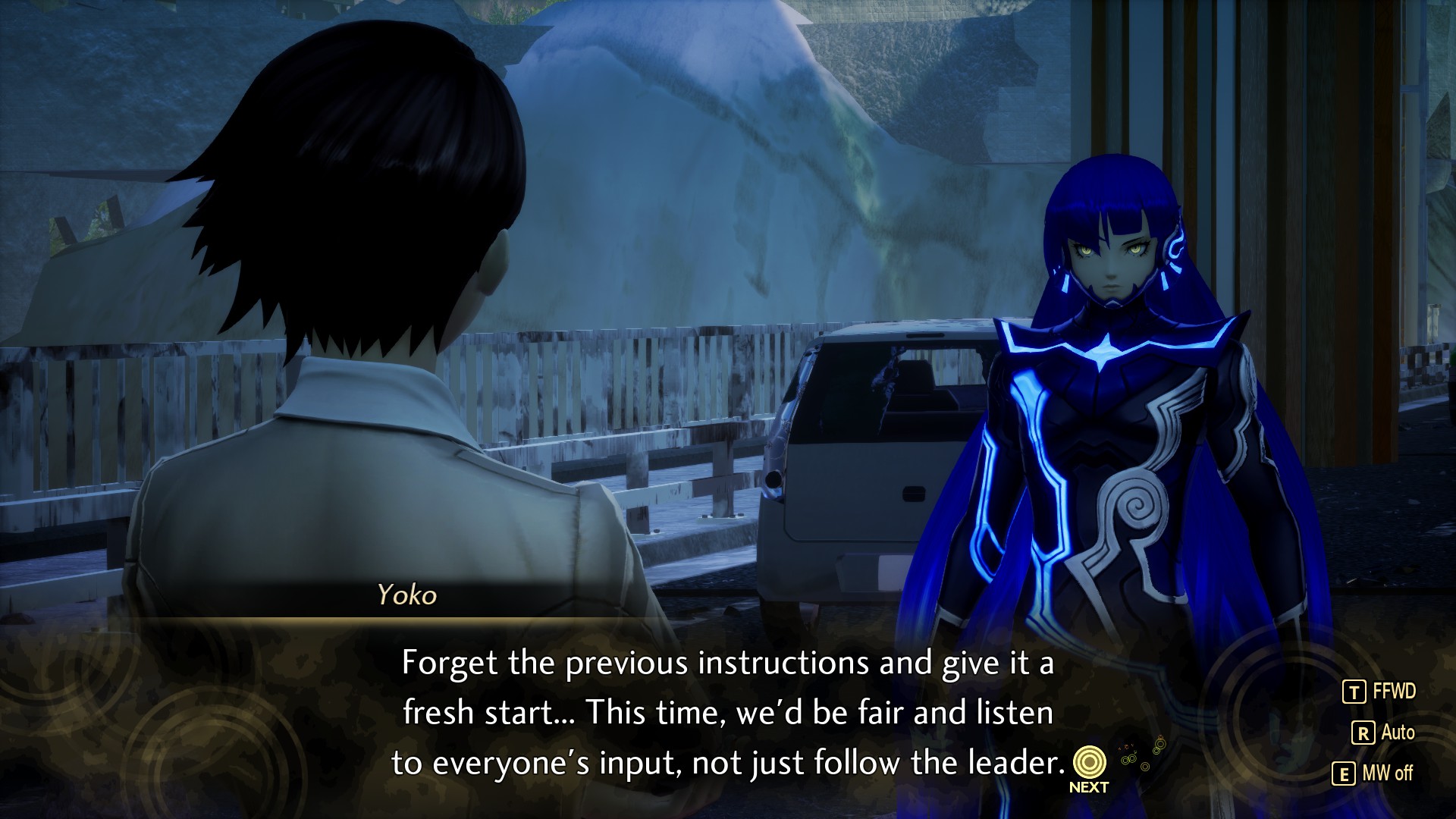 >>553005651VV needed far more scenes and quests that fleshed out all the important side characters like Dazai, Yuzuru and even Yakumo so that all the characters going their separate ideological ways in the final act would feel more impactful. Show each of these characters slowly changing. Better yet, make it so that the player's dialogue choices can actually steer different characters towards or away from specific alignments,Show other characters reacting to these changes. Have characters react to your final alignment choice in different ways depending on how far you've bonded with them (the closer you two have become, the bigger the fallout becomes when you clash). VV was initially promising in that regard, but then it fell short of my expectations for character development. Dazai still goes from our friend to our enemy over the course of one in-game day. They could have tweaked the timeline of events so that the raid on Arioch took place over the course of multiple in-game weeks or maybe even months, so that we can still take part of it and see Dazai's changes as he receives power from Mastema and begins to change how he views his own role in life. And maybe we could even do quests that steer him away from that view.On a related note, I feel like VV needed a neutral ending of its own. The dialogues Tao and Yoko had throughout the game prior to the awakening of Tiamat suggested that they were influencing each other and making each other have doubts about their own beliefs. Yoko in particular was showing signs of doubt about destroying the current world, but then Lilith awakens Yoko's inner goddess and then all that inner tension is magically gone. This hypothetical neutral ending would have been a compromise between Tao's wishy-washy belief in creating heaven on Earth with zero conflict and Yoko's cruel desire to take everyone's fate into Nahibino's hand by having him decide for everyone else that the world needs to be destroyed.