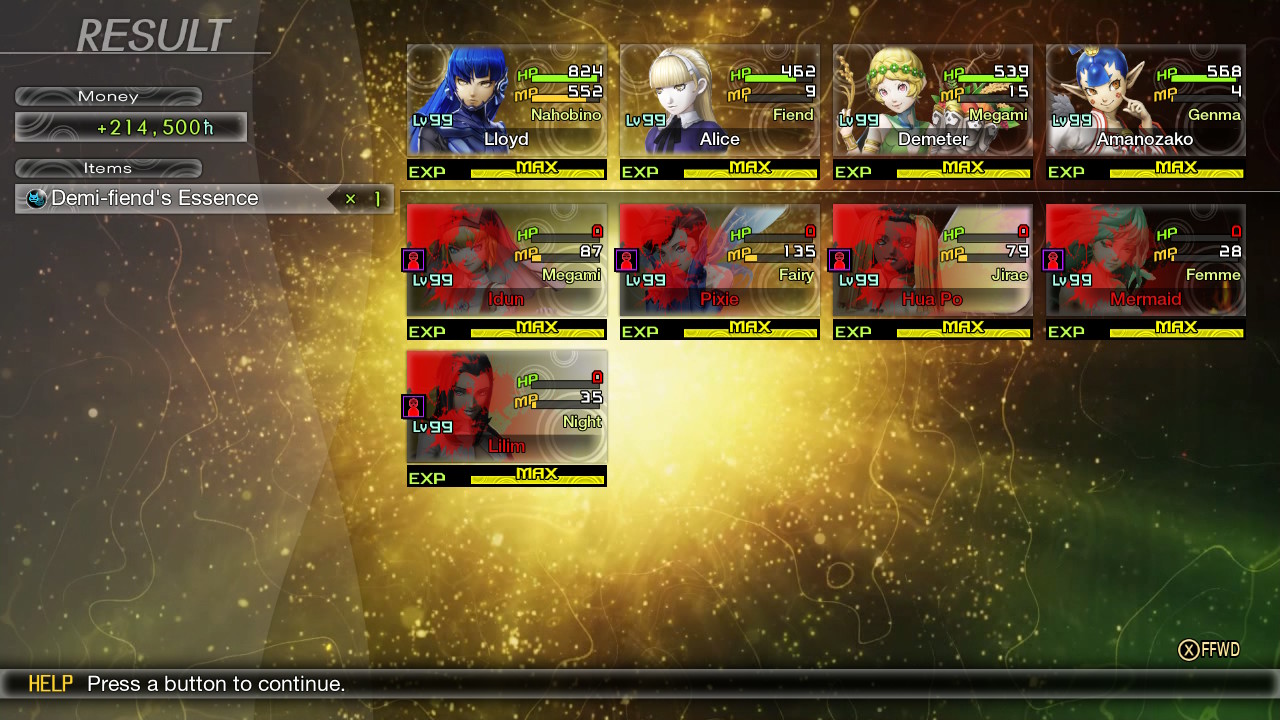 Holy shit I just nuked the Moiré sisters into the stratosphere. I killed them all in like 3 turns. I fucking love the Gaea magatama.
