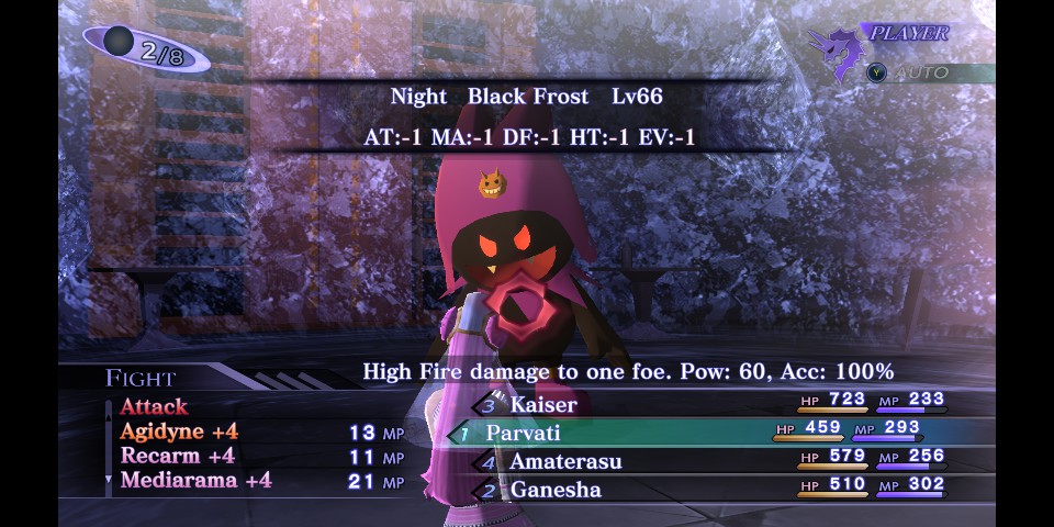 Man. Agrat is such an OP demon, she's got a one click almighty nuke +9 that's pretty much a magic Hassou Tobi. I gave her Almighty Pleromas and crit boost skills and I basically raped all the bosses. Not to mention her resistances are just shy of Naamah's.