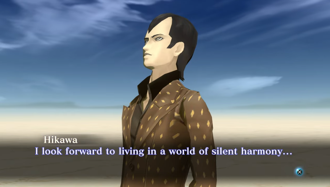 >>553008014That commentary would have worked far better if the characters were more fleshed out. Like, seriously, do you think Dazai makes a good case for the Law alignment with how he goes from good-hearted but indecisive to just edgelord anime villain over the course of one in-game day? Dazai in Canon of Vengeance is even worse, because the game spends the first half establishing a bond between MC, Yuzuru and Dazai (think of that huddle scene in MC's room after they were just bickering with each other), but then one in-game day later, Dazai is now the same edgelord anime villain who coldheartedly kills Yuzuru. Not exactly good philosophical commentary. Yuzuru has even less in the way of any concrete representation of a philosophical alignment due to his character simply being someone who wants to save Tokyo and happens to go along with the god who wants to create a Chaos alignment world of myriad gods instead of one god. There isn't any deep-seated conviction for why he believes Tokyo is so important that the ONLY way to save it was to create a world of myriad gods. He just follows Koshimizu, who happens to have that goal.