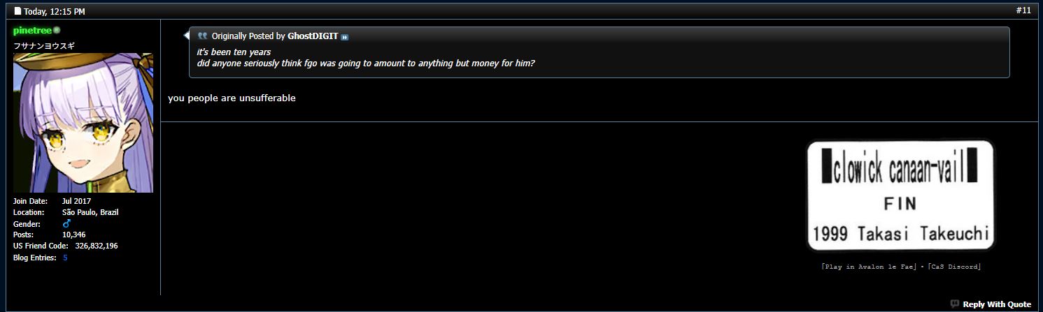 >>552914290Already doing it, I also play other games and even vidyas.Is just that FGO is part of it and well, I can't help but want to know what are they gonna do about it>>552914360Does my presence bother you? Good then!