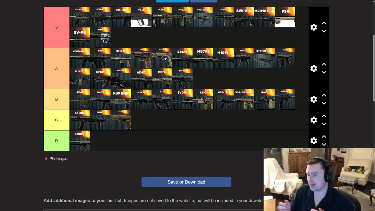 >>552956672>best guns?Any gun when I use it>worst guns?Any gun when you use it.Nah just kidding. Kord is my go to AR and M240L is my LMG. M4A1 is my carbine and vector is my submachine gun. My list might be outdated though