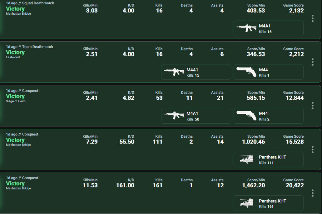 >>552928295I have performed science by going to the leaderboards on the tracker and checking the number of kills the person ranked 1000th for each gun had. 1000 is low enough ranked that it should be an average person and get us good representation.According to that, the Kord is actually the most popular AR in the game, with 3773 kills. It's slightly ahead of the HK433 at 3557 kills. In terms of overall usage it's in third place, after the M4 at 5140 kills and the SIG at 4316.So you are actually meta, sorry. You didn't know it but you are.If anyone was interested then APC10 and M27 win their categories, and L85+carbine SCAR+UMP+M60 are the losers of theirs. And baby SCAR is the overall loser as least popular gun in the game. At least of the automatics, I didn't bother checking shotguns/DMRs/snipers.