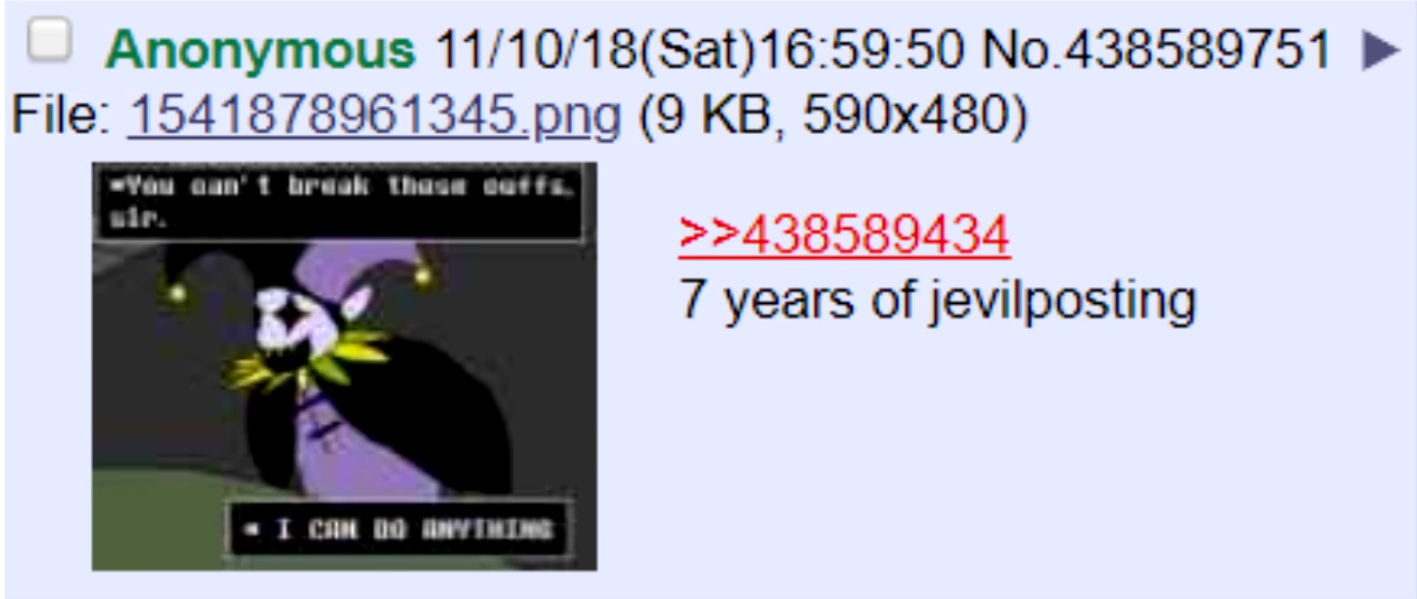 >>552936414ok is this actually real lore or is this some goofy ass trollcoomer buttbuddy shit where people pretended to be him (and the got mad at the chapters for flushing their trolljerk circus down the drain)