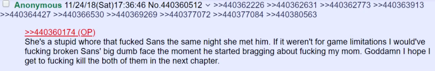 >>552934384>they wouldn’t randomly attack people for no reasonMost of Undertale's gameplay is monsters randomly attacking you for no reason