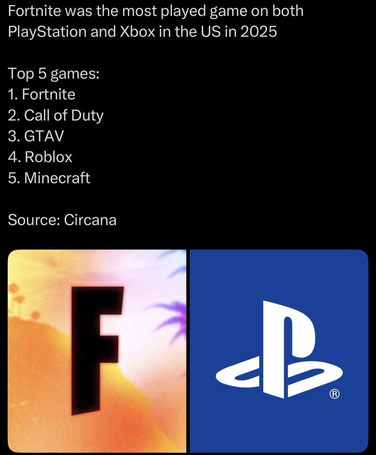 >>553008013>>553008462https://www.videogameschronicle.com/news/playstations-most-played-games-of-2025-are-identical-to-2024s-list/https://www.gamesindustry.biz/top-5-most-played-games-on-playstation-in-us-remain-unchanged-in-2025-says-circana