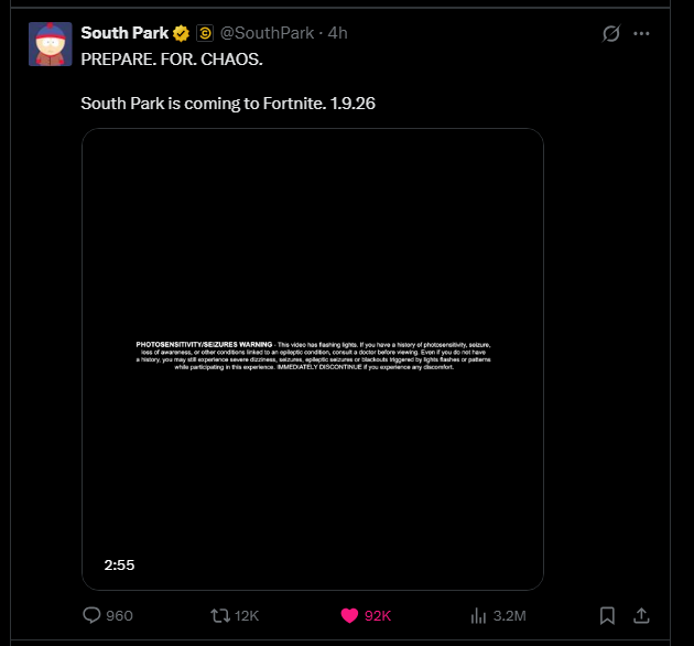 >simpson collab>south park collabtwo series i really like 20 years ago, but the new seasons have been so shit and boring than i don't care about them anymore, epic really is using nostalgia bait to bring numbers and low profits lol 100% sure this whole chapter is gonna be the year of boomer collab.