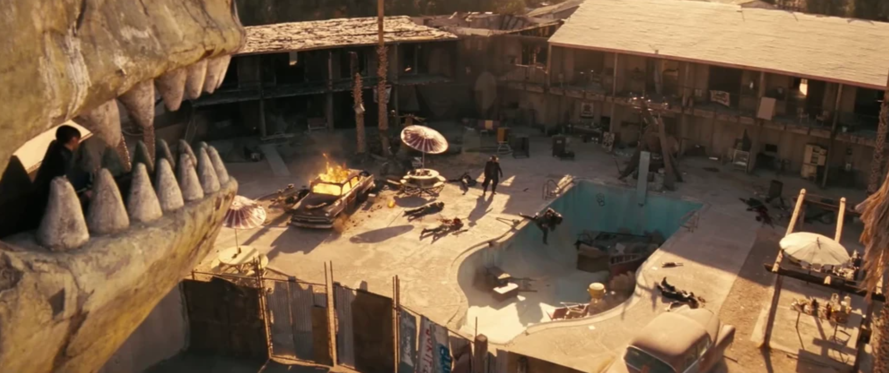 The strip is completely trashed and overrun by deathclaws