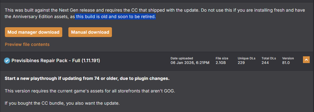 Previsibines Repair Pack causing flickerings again Not even sure if I can update the damn thing since I'm on 1.10.984 and wasn't planning to going to the new version anytime soon to not break older mods