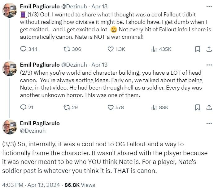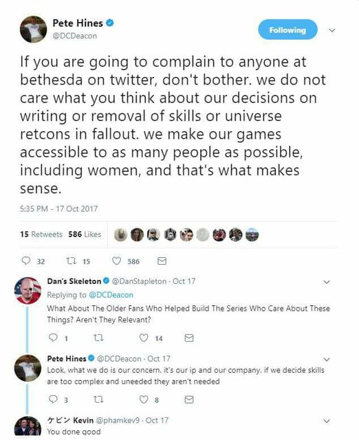 >>552970346>Why does Tim Cain like the Fallout show?Cuz he's sucking up to Bethesda in the hopes they'll hire him for a project duh. Even fi it's a small project, like some side-game that's still good money and a few years worth of work. When you're young you have all these ideas, but when you're old you're more likely to think of your mortgage. They see their shit as a bunch of nerd junk to capitalize on, not something to be passionate about. Everyone sells out, and not everyone can remain a passionate nerd forever. "Insiders" will always see this as business first, story second. Outside fans only see it as a story.