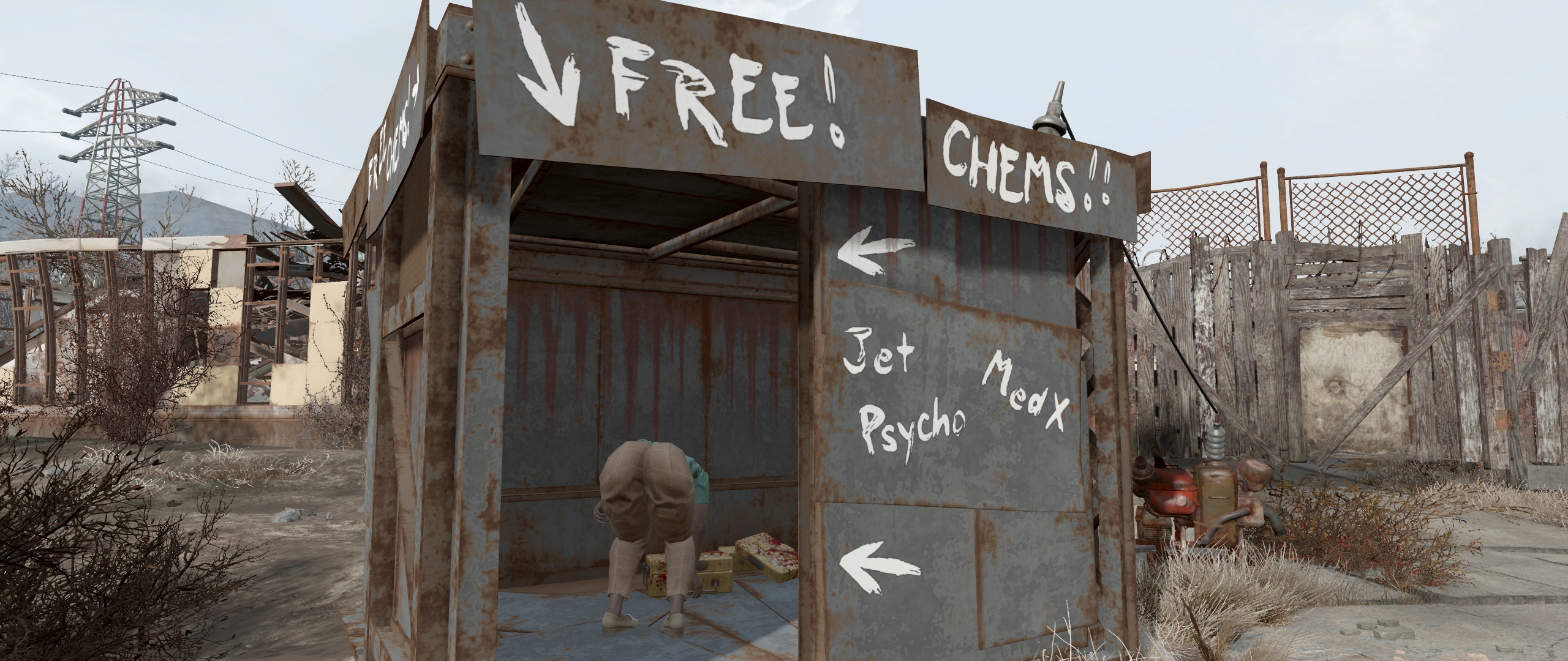 >>552959209https://fallout.fandom.com/wiki/Tragic_addiction>Tragic addiction is a form of addiction which was cut from Fallout 2.>The bag and cup on the table feature a 'W' logo, representing an upside down logo from the fast food chain McDonald's.