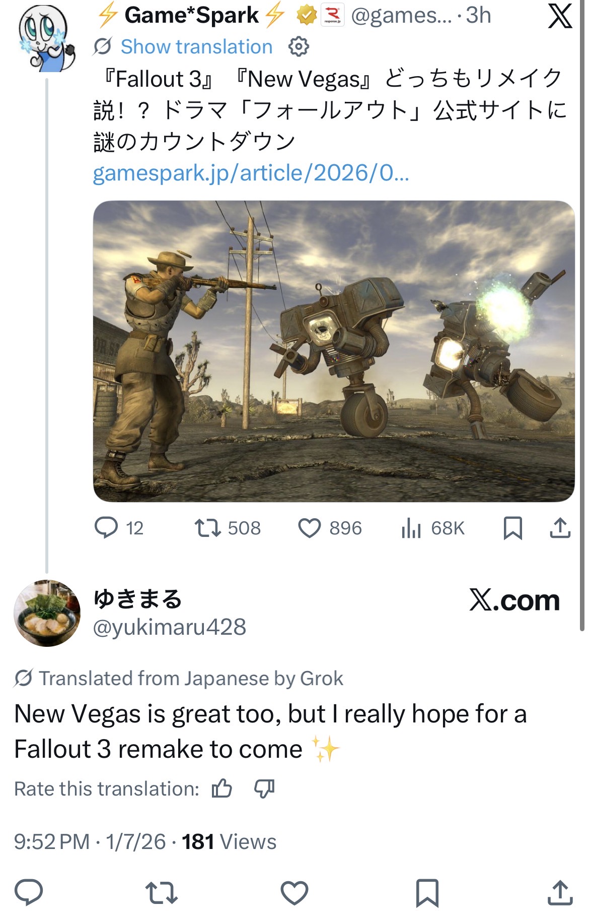 >show wreaks chaos on the general, followed by the shadow drop of fo3 and nv remastersI love it.