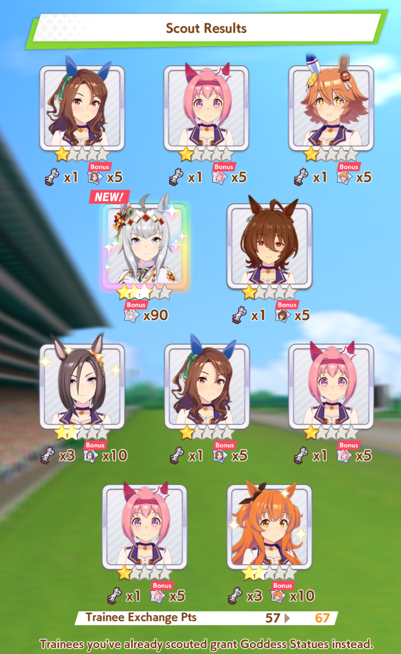 Current Rate Up Trainee: Oguri Cap (3* alt), Biwa Hayahide (3* alt), Mejiro Dober 3*