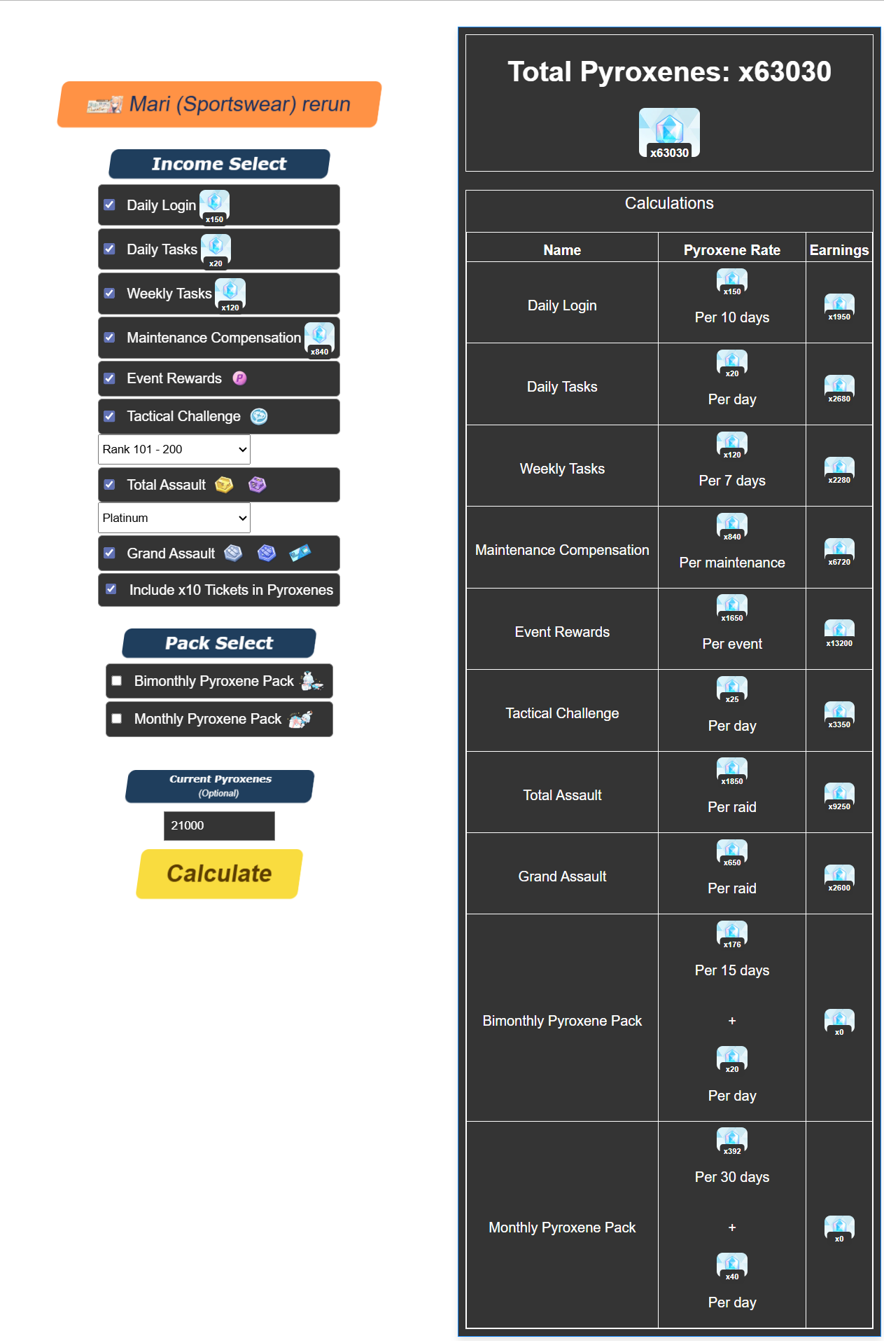 Free 100-pulls: Himari alt (meta and limited), Eimi alt.Bluefes: Mecha Aris (meta), Rio (special and welfare)