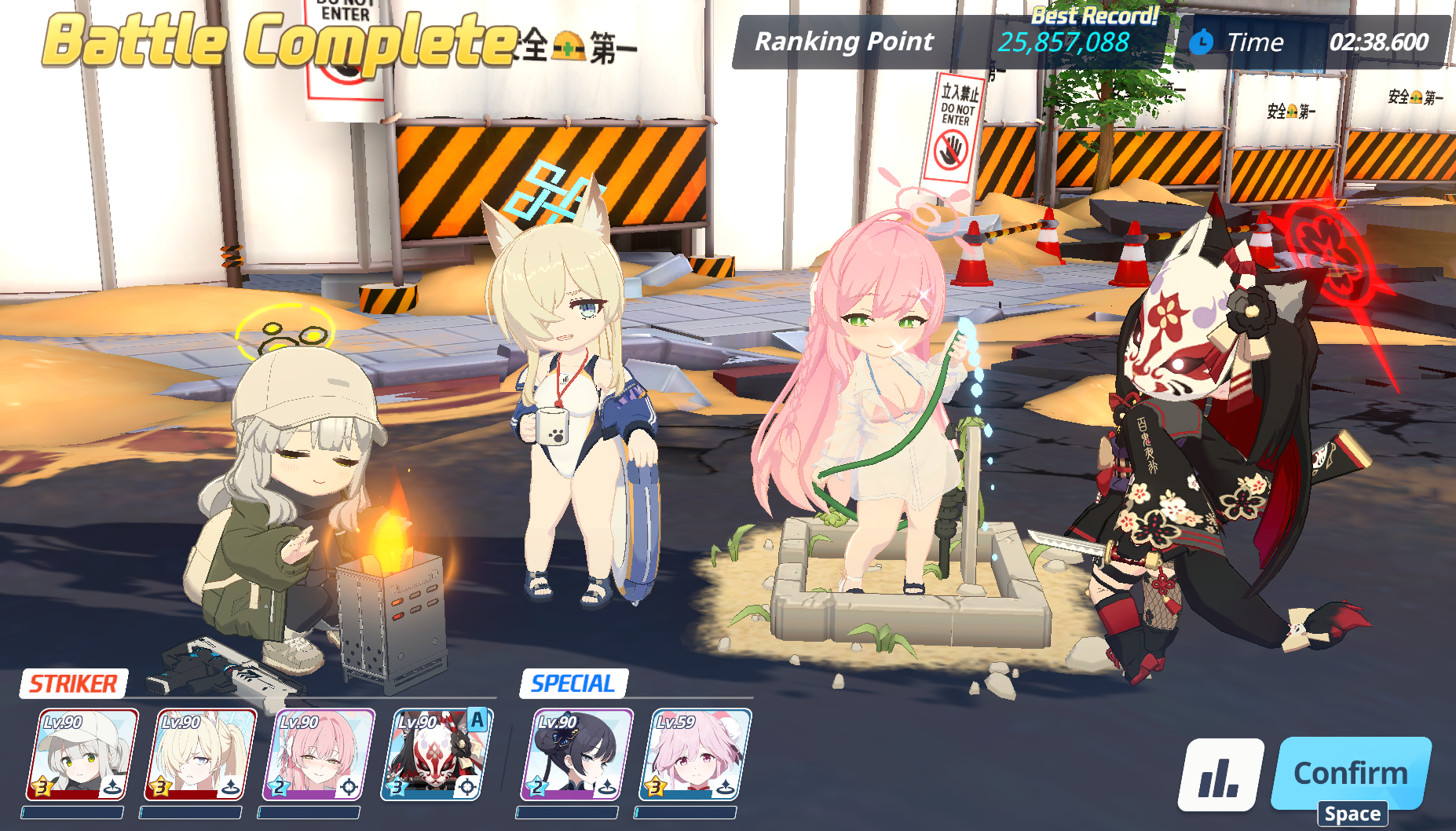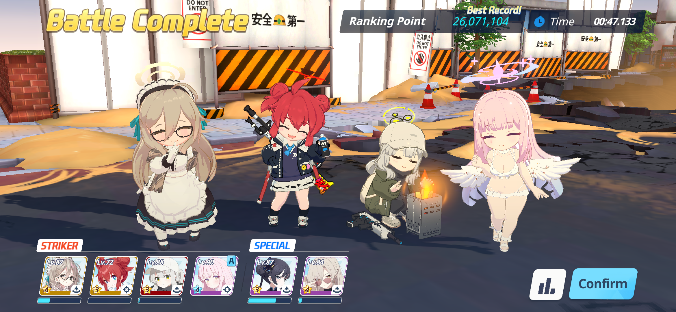 >>552983993BHoshino (attack mode) - Atsuko - Eimi - HoshinoSShiroko - MReisaMight lose because of Saki taking out BHoshino with her normal skill, but also might not. The win is secured by MReisa dropping on BHoshino as early as possible. This should force BHoshino backward into a rather safe position. Eimi should survive to the end. Depending on when Hoshino (regular) goes first, the match could go very easy desu.SShiroko will kill Atsuko probably regardless with one or two hits (she needs longer for Tsubaki)