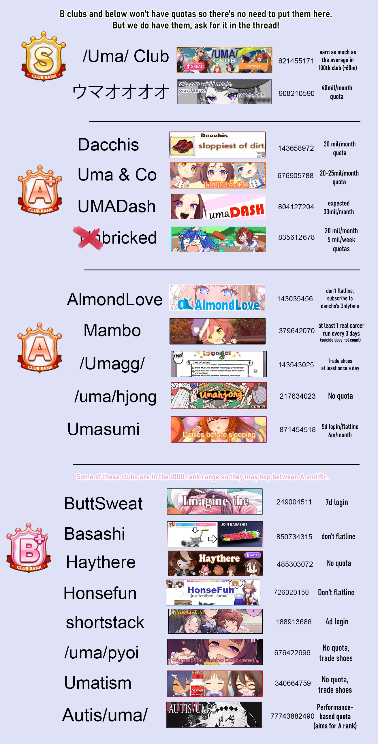 Can someone post the club list image with requirements?