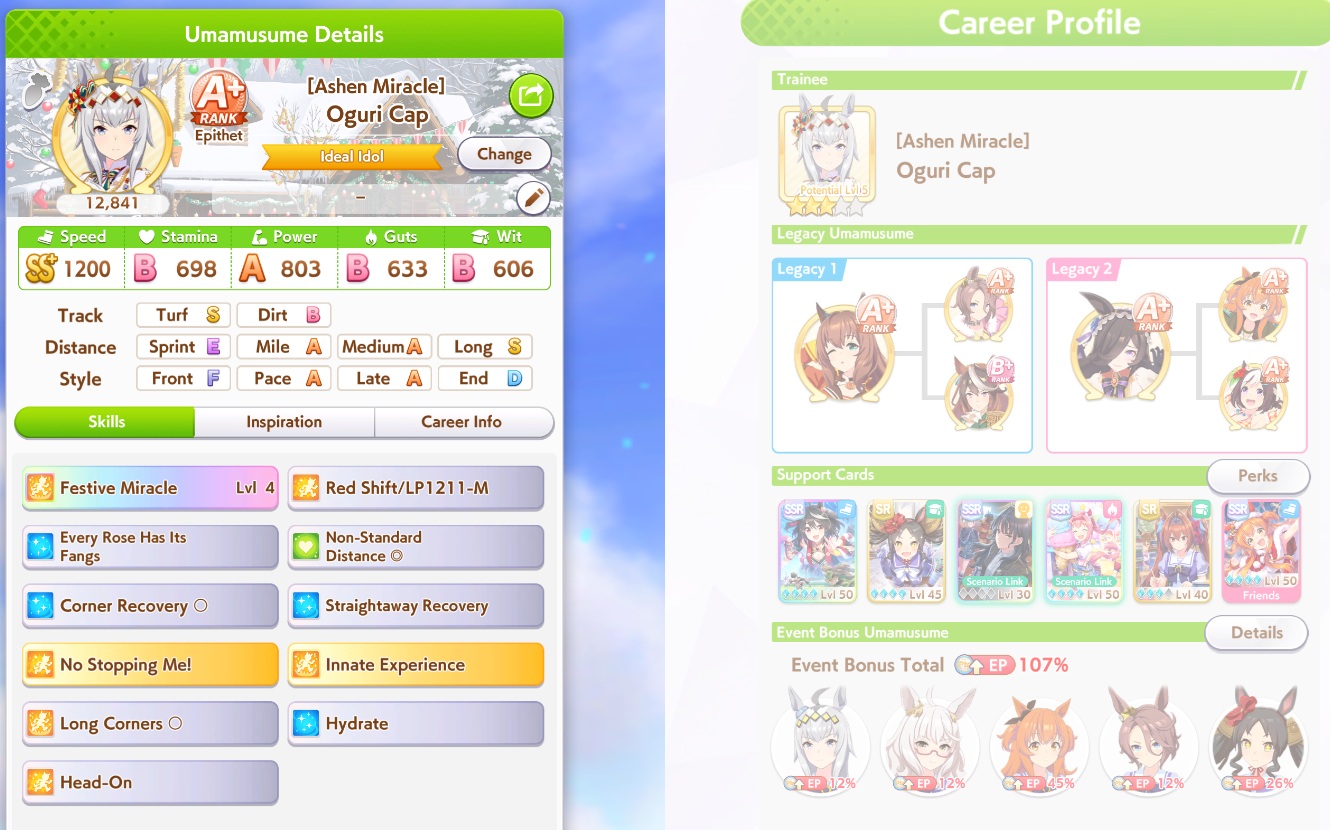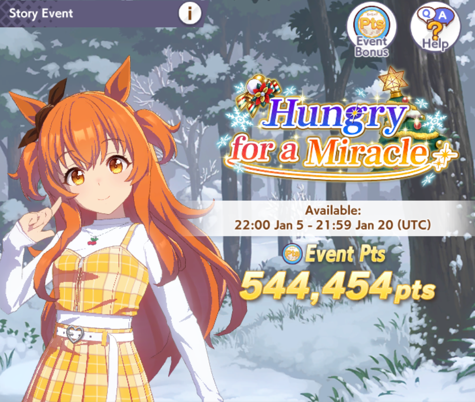 Previous: >>552975359>Global Game NewsLink your account to Cygames iDCurrent Scenario: Aoharu Hai aka "Unity Cup"Current Rate Up Trainee: Oguri Cap (3* alt), Biwa Hayahide (3* alt), Mejiro Dober 3*Current Rate Up Support Cards: Narita Taishin (SSR), Mayano Top Gun (SSR), Daitaku Helios (SSR), Vodka (SR)Late January - Sagittarius Cup - Nakayama Turf 2500mhttps://umamusume.com/news/100040/https://pages.snep.pw/uma/anni-skill-changes/>JP Game NewsCurrent Rate Up: NY Sakura Laurel 3*, NY Ikuno Dictus 3*, Oguri Cap 3* (Cinderella Form), Stay Gold 3*, Air Groove (Speed SSR), Fine Motion (Power SSR) Inari One (SSR), Mejiro Dober (SR)New Scenario "Yukoma Hot Spring" releasedTimeline: https://uma.moe/timelineCygames Webstore: https://webstore.cygames.com/en/umamusume_en/>Thread Clubshttps://rentry.co/umaglobalclublistYou must be E3 (20k points) to join a circle. Apply with /uma/ or /vg/ in your profile or post ID in the thread.>All Guides & Resourceshttps://rentry.org/uma26Game databasehttps://gametora.com/umamusume (Click the gear to switch between JP / global server info)A basic guide for newfagshttps://rentry.org/umaglobalFind networks if your region is blocked from the game or clienthttps://www.umavpn.top/93Seiyuu & Concertshttps://rentry.org/umstUma Texthttps://umareader.idsmile.xyz/