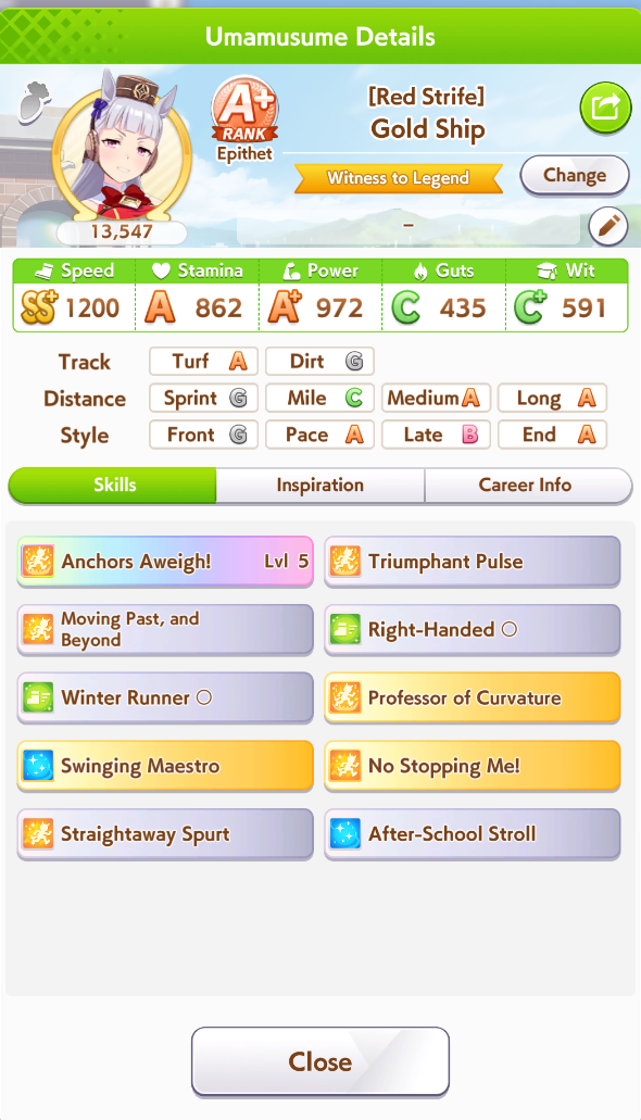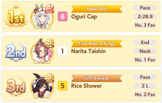 I'm starting to doubt if distance S really is all that important. CM finals are all fucking luck so long as you have the right honse and accel to match.
