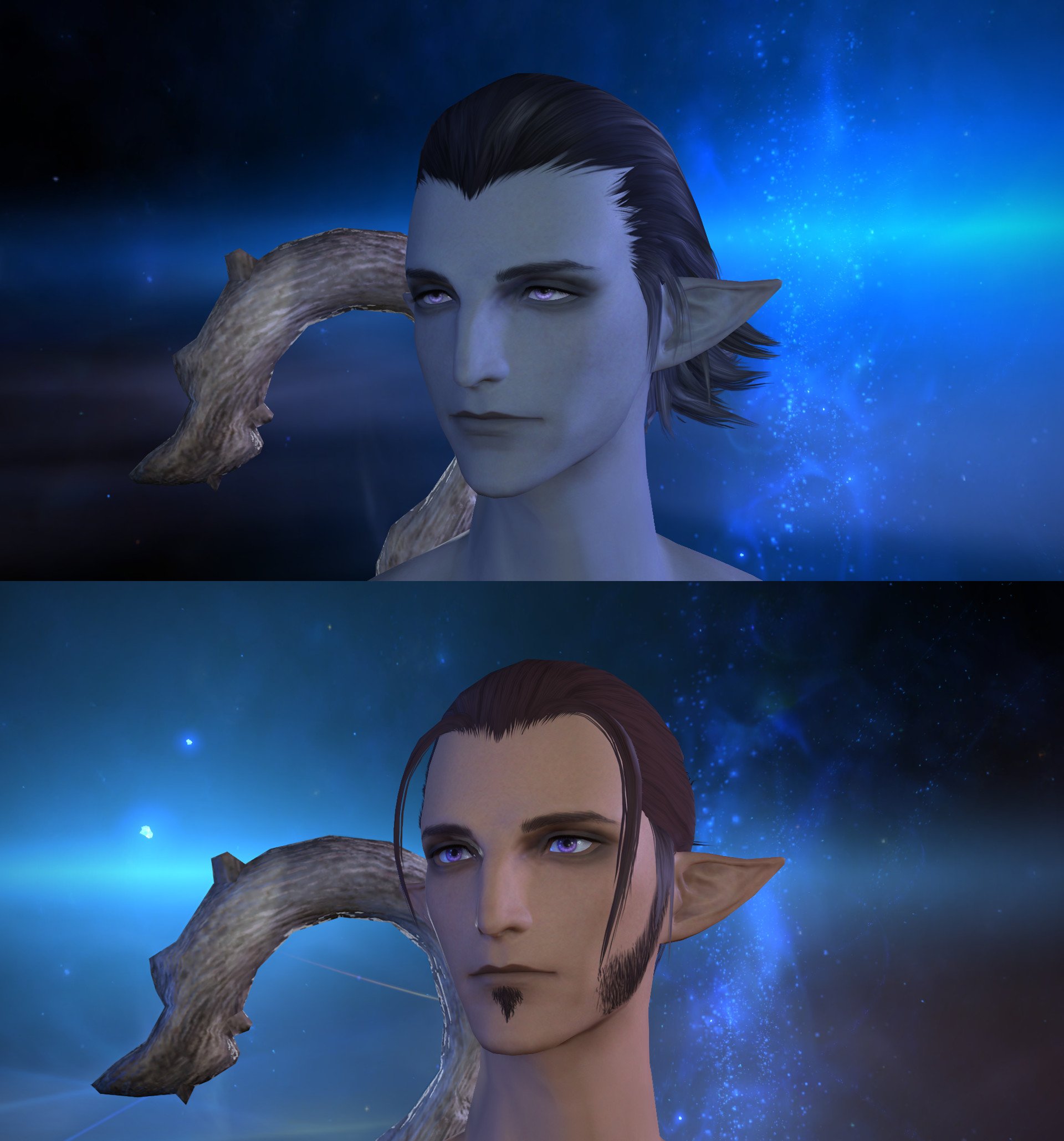 fantaing one of my melf alts again & torn between these two looks ough my other melf is a wildwood and i feel like i always give my malezen droopy eyes and big noses but i can't help it anyway erm thoughts