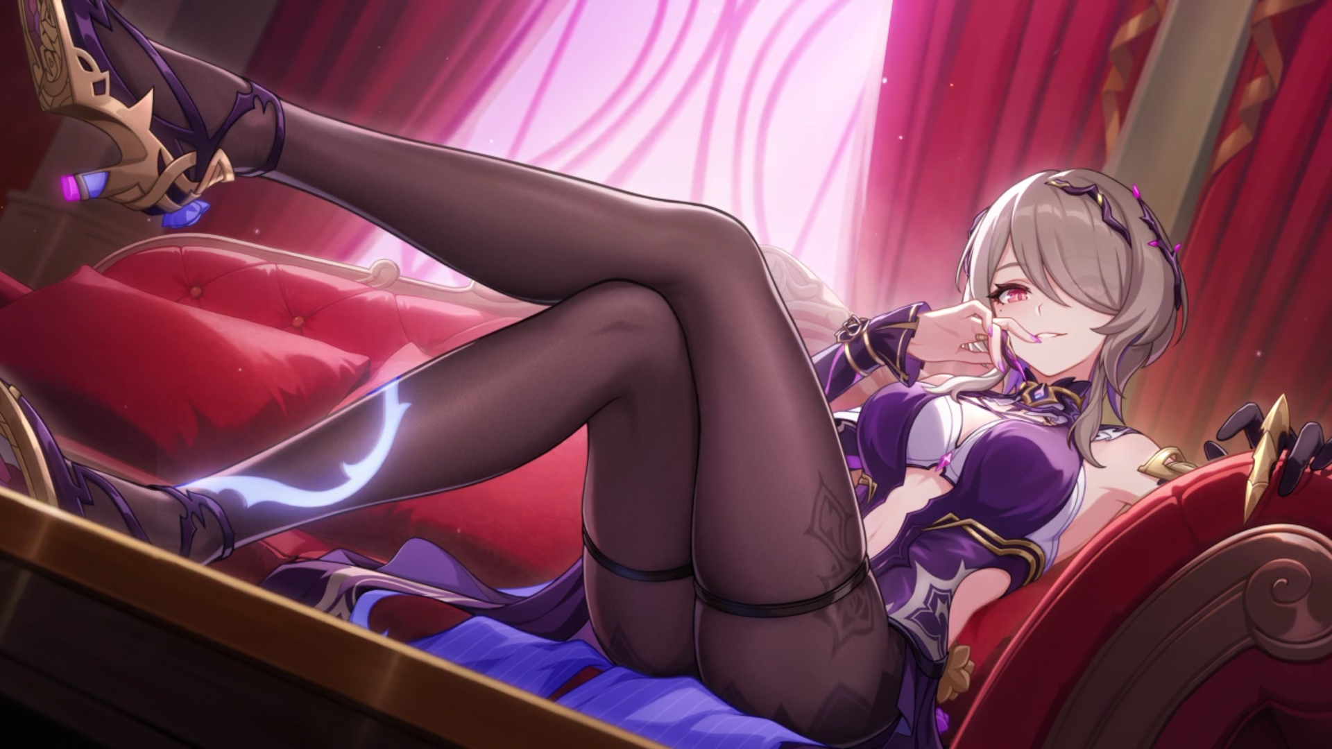 Worshipping Madam Herta's feet under her desk as she works on her research