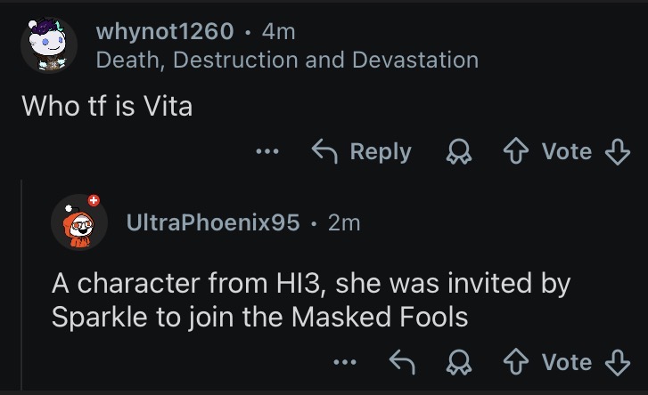 Kind of weird that they'd put Vita in hsr before her story in hi3 is done Did she just ditch all the Earth characters? Is she gonna tell Welt to go home?