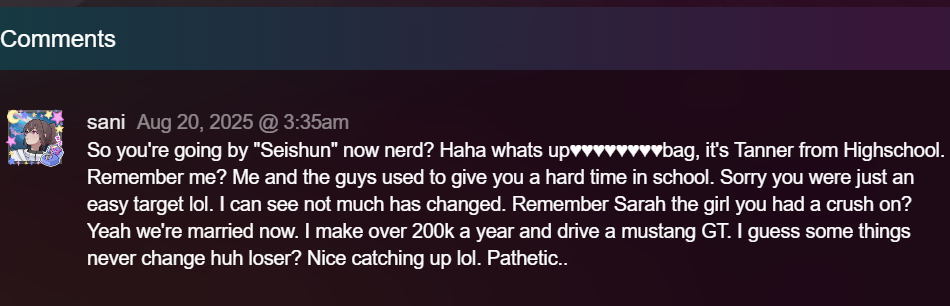 >>553024606The worst shitposting campaigns are always fueled by jealousy and humiliation