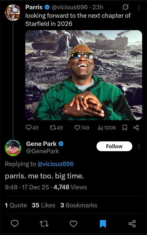 Looks like Starfield will not be at this month's developer direct. Don't know if Bethesda genuinely has a really big update planned for this game or if there's problems with trying to update it. Hopefully it won't be getting constant delays like GTA 6.
