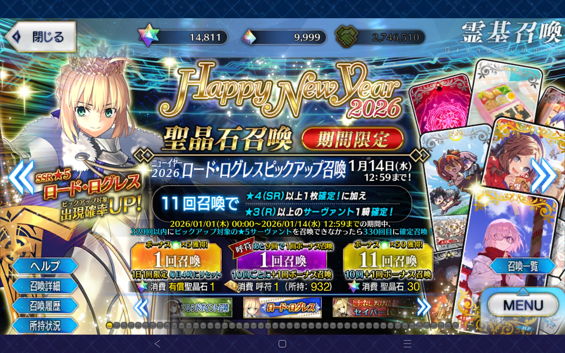 Previous: >>553007564>"The Beginning of Aftertime":●Release date: January 7 JST.▶Costume dress for U-Olga Marie available at Dress Making Shop after clearing.https://news.fate-go.jp/2026/01/after_time/>Fate/strange Fake Broadcast Commemoration Campaign:●January 3~10 JST.▶Login Bonus: A commemorative CE.▶Interludes for Gilgamesh and Enkidu will be open for all players.https://news.fate-go.jp/2026/2026_f_s_f_cp/>Fate/strange Fake PU summon:●January 3~10 JST.5*Saber Richard I (limited)●January 9~16 JST.5*Archer Gilgamesh (limited)5*Lancer Enkidu (permanent)https://news.fate-go.jp/2026/2026_f_s_f_cp_pu/>2026 New Year's Campaign:●January 1~15 JST.▶Present: 30 SQ, 20.26M QP and a commemorative CE.▶Login Bonus: 30 Hellfire of wisdom, 10M QP, 1 Crystallized Lore, 20 3*Fou-kun (10ATK, 10HP),10 Golden Apple, 1 Beast's Footprint, 2 5*Fou-kun (1ATK, 1HP) and 1 Holy Grail.▶Panel Missions: 5 Summon Tickets, 1 Crystallized Lore, 4.42M QP, 6 SQ, 7 Grail Tears,1 Beast's Footprint, 3 Golden Apples, a limited 3*Command Code and a commemorative CE.▶A Stargazer's Teapot will be added to daily missions rewards (~Jan 7).▶Master level increased to 200.▶The chances of obtaining a great/super success when strengthening a servant/CE will be double.▶AP consumption for Ember Gathering and Training Grounds will be halved.https://news.fate-go.jp/2026/newyear2026_cp/>2026 New Year PU summon:●January 1~14 JST.5*Saber Lord Logres●January 6~8 JST.5*Archer Tutankhamun4*Caster Yui Shōsetsu●January 7~9 JST.5*Assassin Huyan Zhuo4*Avenger Xu fu●January 8~10 JST.5*Rider Takeda Shingen4*Berserker Nagakura Shinpachi●January 9~11 JST.5*Ruler Mélusine4*Archer UDK-BarghestAll limitedhttps://news.fate-go.jp/2026/newyear2026_pu/>/fgog/ Friendlist form and spreadsheet (2026):https://forms.gle/WK4dwSC6Mn2WQfZu8https://docs.google.com/spreadsheets/d/1leQ09m5klFajbCcededkANJfeMiAmVz-PbCI_r7xyXc/edit?usp=sharing>Utility links:https://pastebin.com/iaWmXAq7