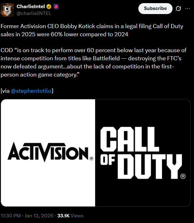 >>553893441Black Ops 6 isn't even on the list. That means all the sales for COD are from the year it comes out. That means Black Ops 7 mega flopped. Yikes