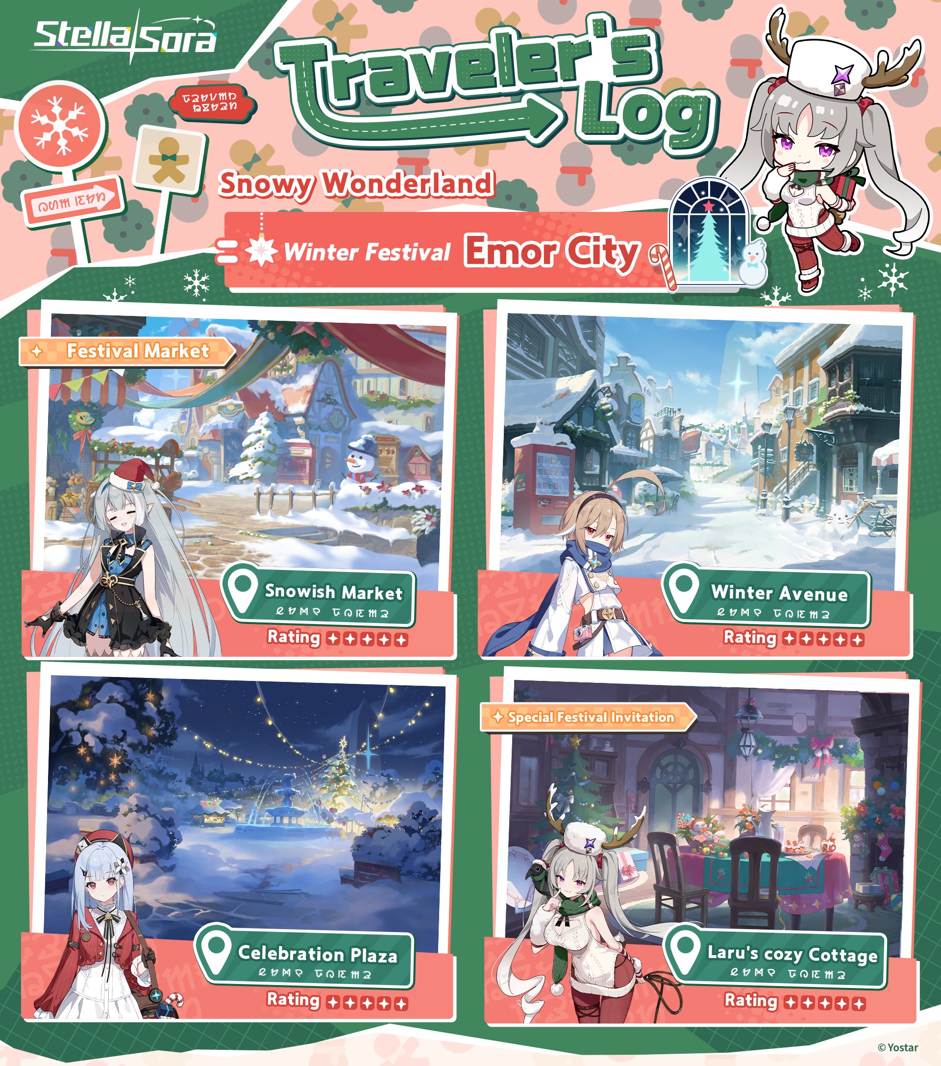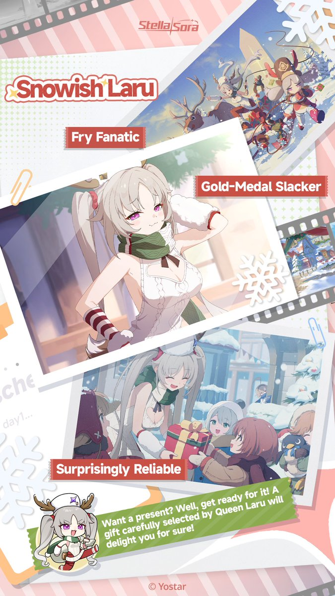 Previous Commission: >>552945819>Game Website & Downloadhttps://stellasora.global/>JP Clienthttps://stellasora.jp/>Current Content[12/29-01/19] Limited Recruit - (Aqua) 5* Freesia[12/29-01/19] Disc Pickup - (Aqua) 5* "Sunlit Blossom"[12/23 - Permanent] Weekly Affairs - New Weekly Rewards (500 Stellanites + Mats)[12/23 - Permanent] Everbright Wishes Montly Going Up (90 > 150 + Stamina Bottle Daily)[12/23-01/13] Limited Recruit - (Ignis) 5* Snowish Laru + (Ignis) 4* Flora and (Umbra) 4* Coronis[12/23-01/13] Disc Pickup - (Ignis) 5* "Snowy Night Surprise"[12/23-01/13] Shop Skin - Freesia[12/29-01/19] Cataclysm Survivor - Catastrophe (Element: Ignis, Umbra, Ventus)[12/29-01/13] Login Event - A Chapter of Renewal[12/29-01/27] BP Skin - Iris[12/29] The Nova Times - Chapter 07[12/31 - 01/27] Boss Blitz - Ignis, Ventus, Aqua[01/06] Main Story Chapter 5 Release - A Spark in the Dark[01/06 - 01/13] Raid Boss - Rovina - A Finale Echoing>Upcoming ContentTBA>Database, Buids and Toolshttps://stella.ennead.cc/>Resources and useful linkshttps://pastebin.com/RXz7Dw7S (Friend list)https://rentry.org/StellaSoraResourceshttps://rentry.org/StellaTierListshttps://rentry.org/StellaSoraAscensionGuide>CodesSNOWISHFES2025XMAS