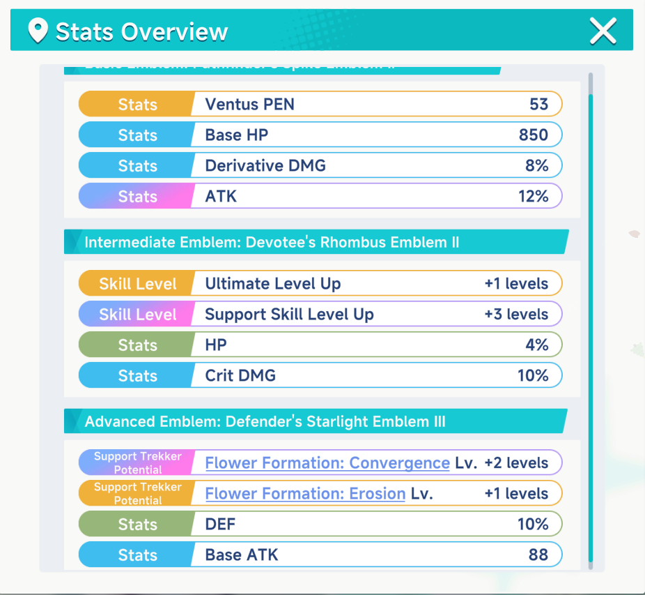 >>553062846you should not grind out emblems before getting pretty much all important characters to level 90. you can get really good DPS increase emblems on supports by just getting +1 or +2 on important support skills, sometimes those giving out even better dps increase than the actual DPS potentials, and the emblem grind is a huge, bottomless sink. So just focus on getting 90 on dps, literally putting any basic emblem, and then moving on to level others to 90 as well, then skill levels should be the next priority, THEN the emblem sink.