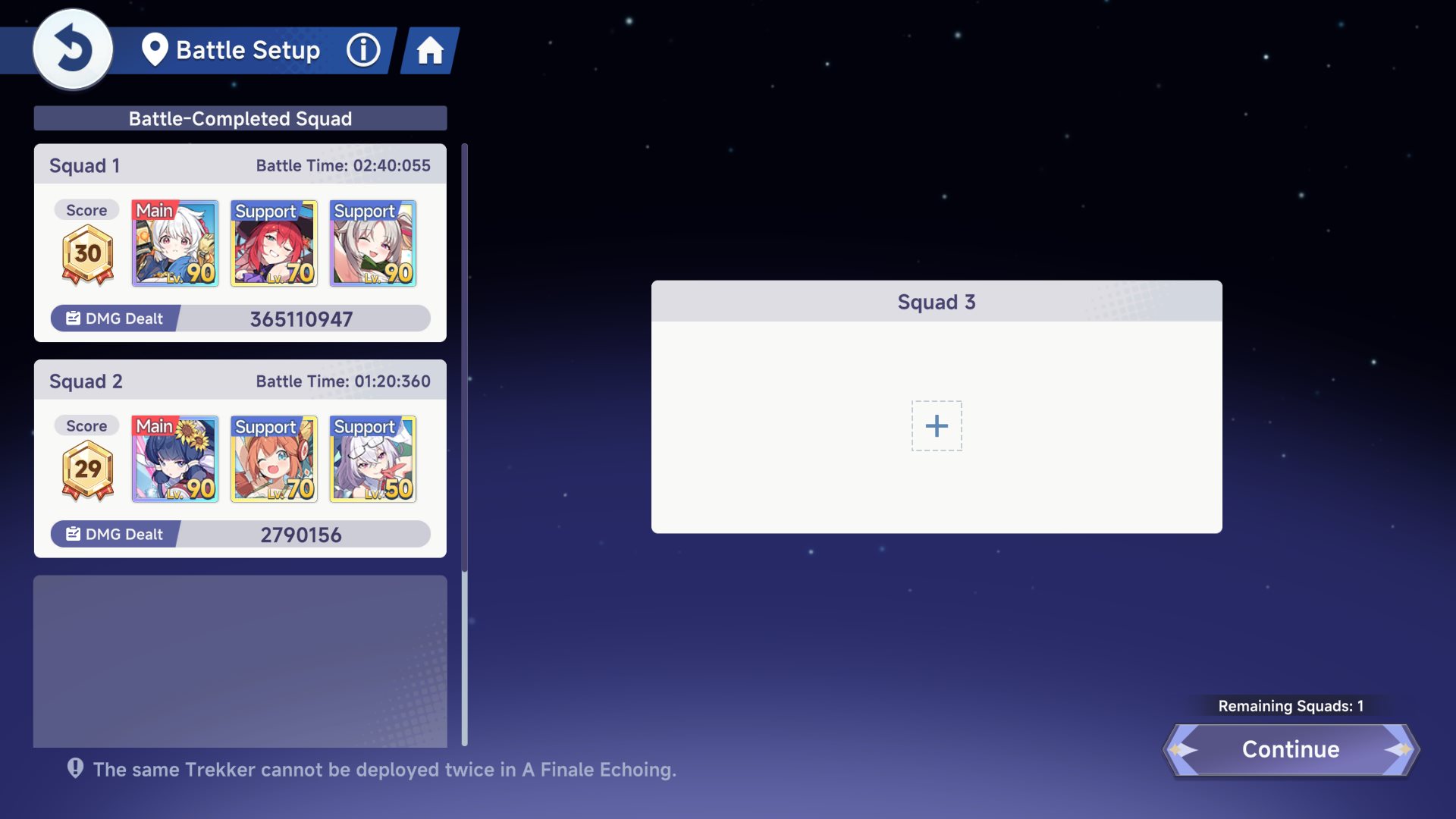 >>553062846>TrekkersDPS Trekkers should always get up to Lv90 as fast as possible, so you can level their skills up.Supports are fine staying at 70 until you can get out of the resource bottleneck.Discs always at Lv70 otherwise you're bricking yourself.Emblems are the biggest bottleneck in this game, take it easy.