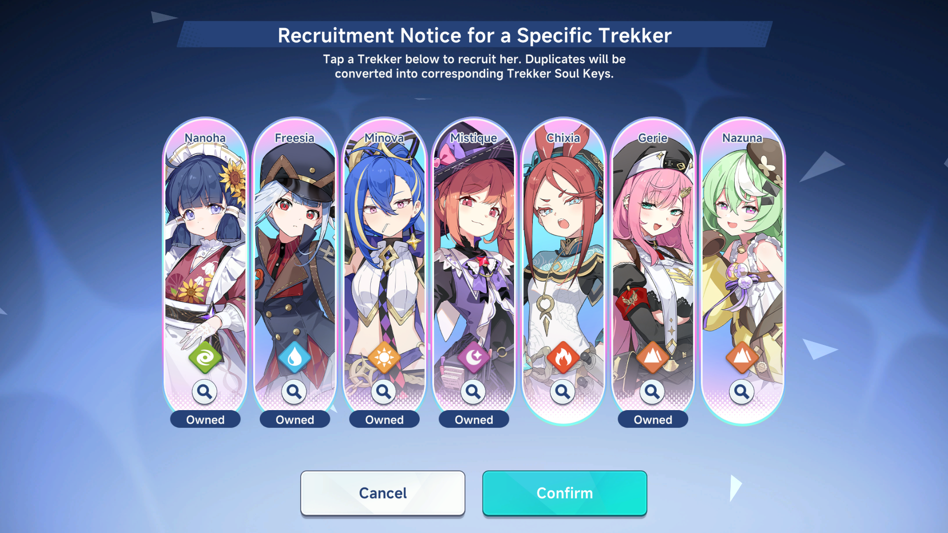 Don't have NazunaI was never given a team where I could use Misty and Cosette as subs.As for the others, I guess I'm way too lazy.